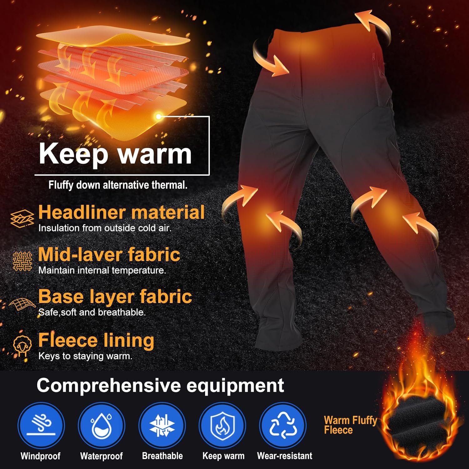 mens thermal lined water resistant pants/insulated hiking pants/softshell pants men/mens winter snow pantsInsulated Water and Wind Resistant/insulated pants men/mens cold weather pants/mens winter hiking pants