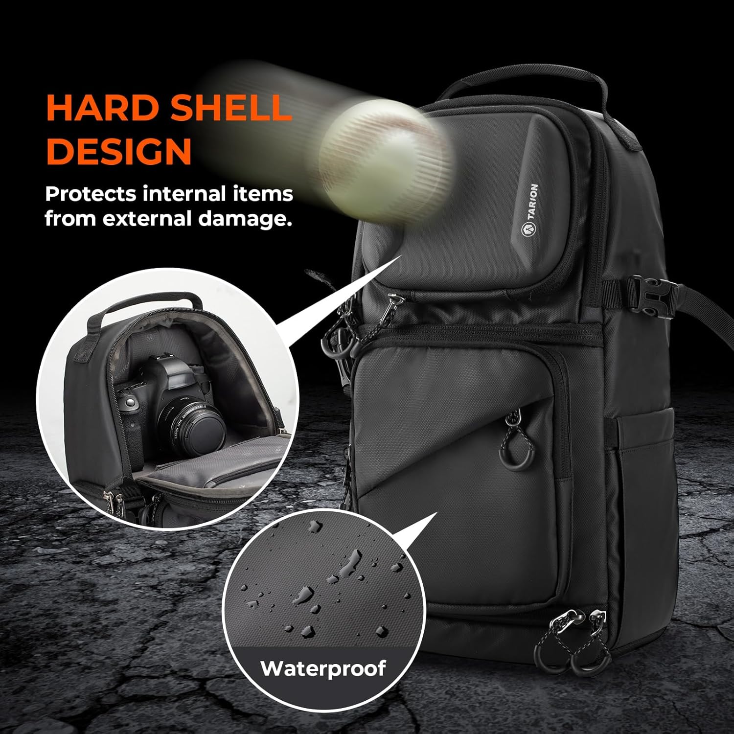 【2-in-1 Camera Backpack】Convert effortlessly between a spacious backpack & sleek shoulder bag. High quality water-resistant 1200D polyester fabric with very high resistance to tearing and abrasion. A waterproof rain cover for extra weatherproof protection is included.