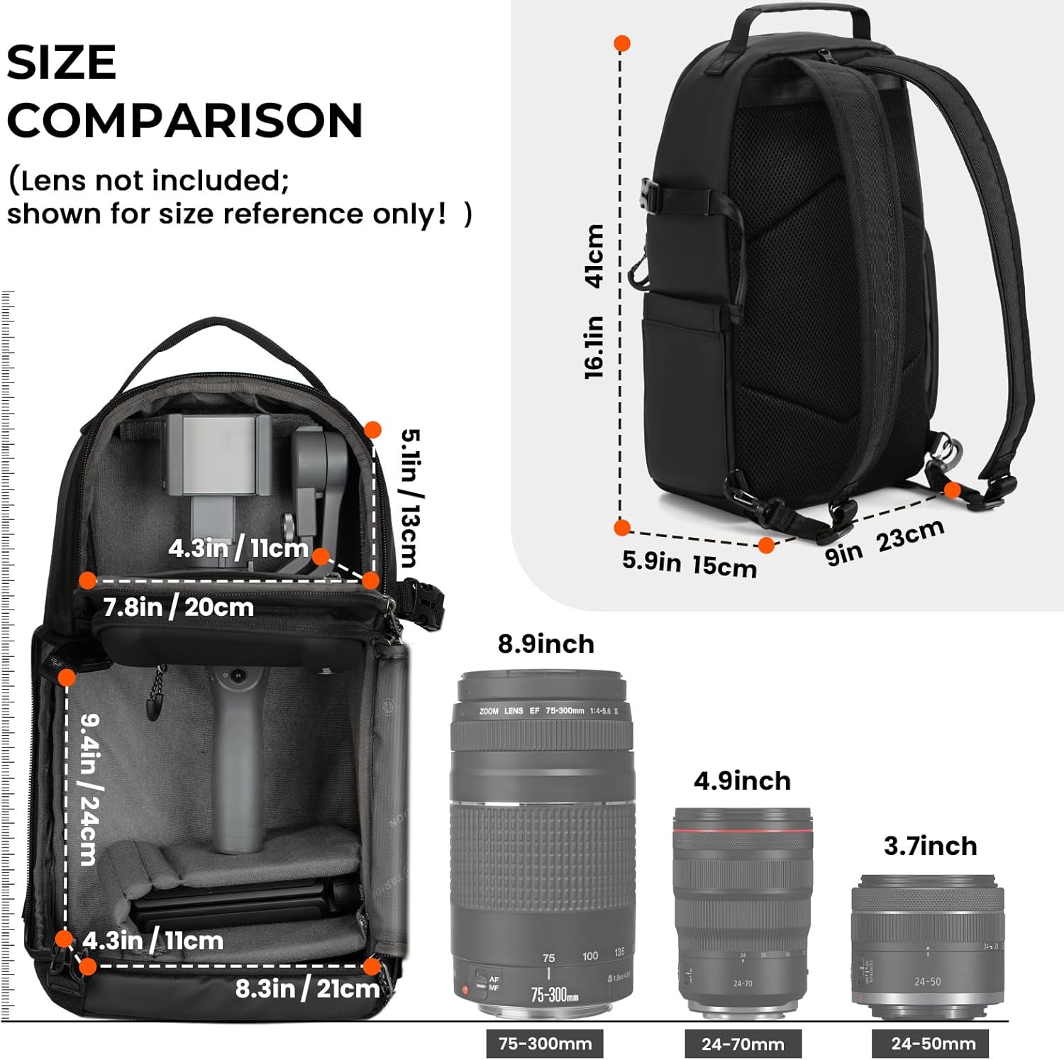 【CONFORTABLE BACK-SUPPORT SYSTEM】 Padded air mesh panel and shoulder strap increase airflow and distribute the weight evenly and the chest strap adds comfort. The DSLR sling backpack features quicker and more convenient access, totally super easy to use for small day trips or street photography.