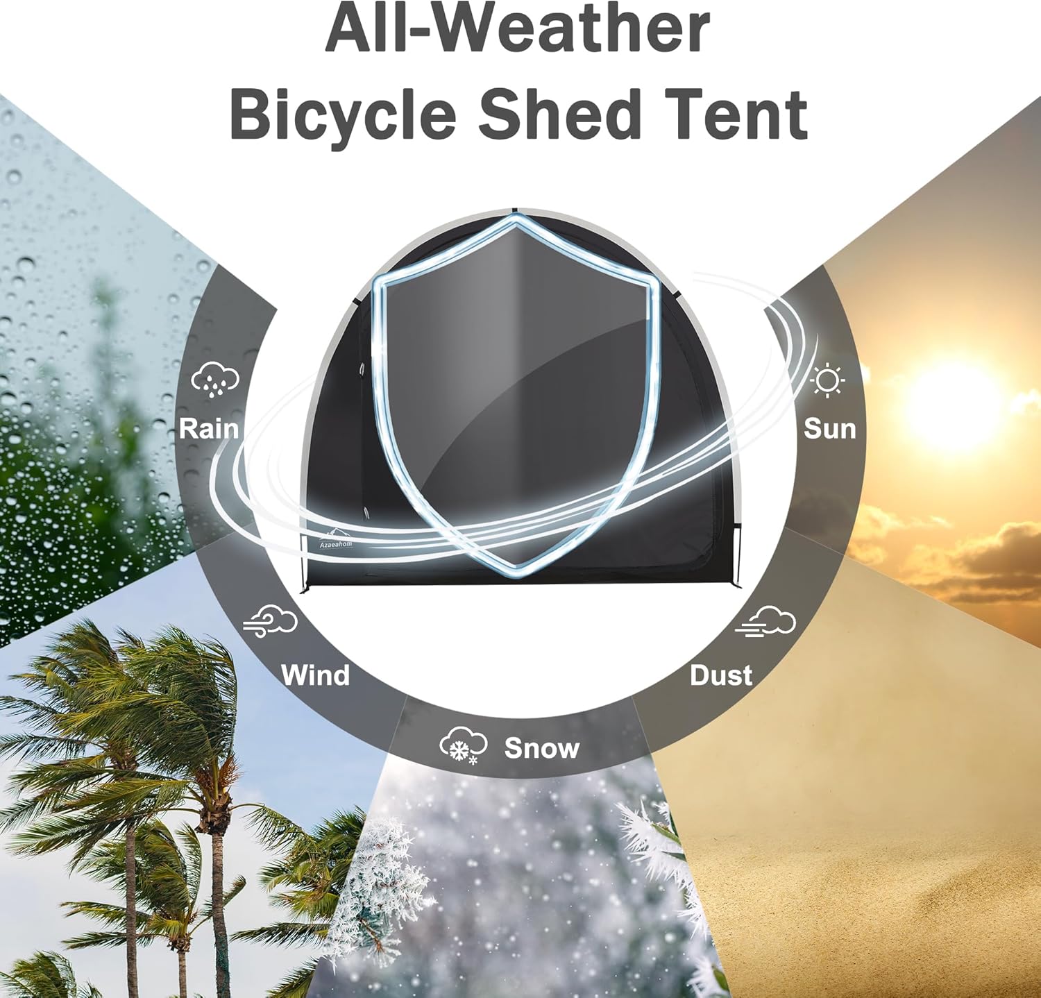 【Compact & Lightweight】When folded, the bike shed measures just 16.3 x 5.5 x 5.5 inches and weighs only 5.95 lbs, making it easy to carry and store. Perfect for outdoor adventures or as a thoughtful gift for friends who love cycling or camping.