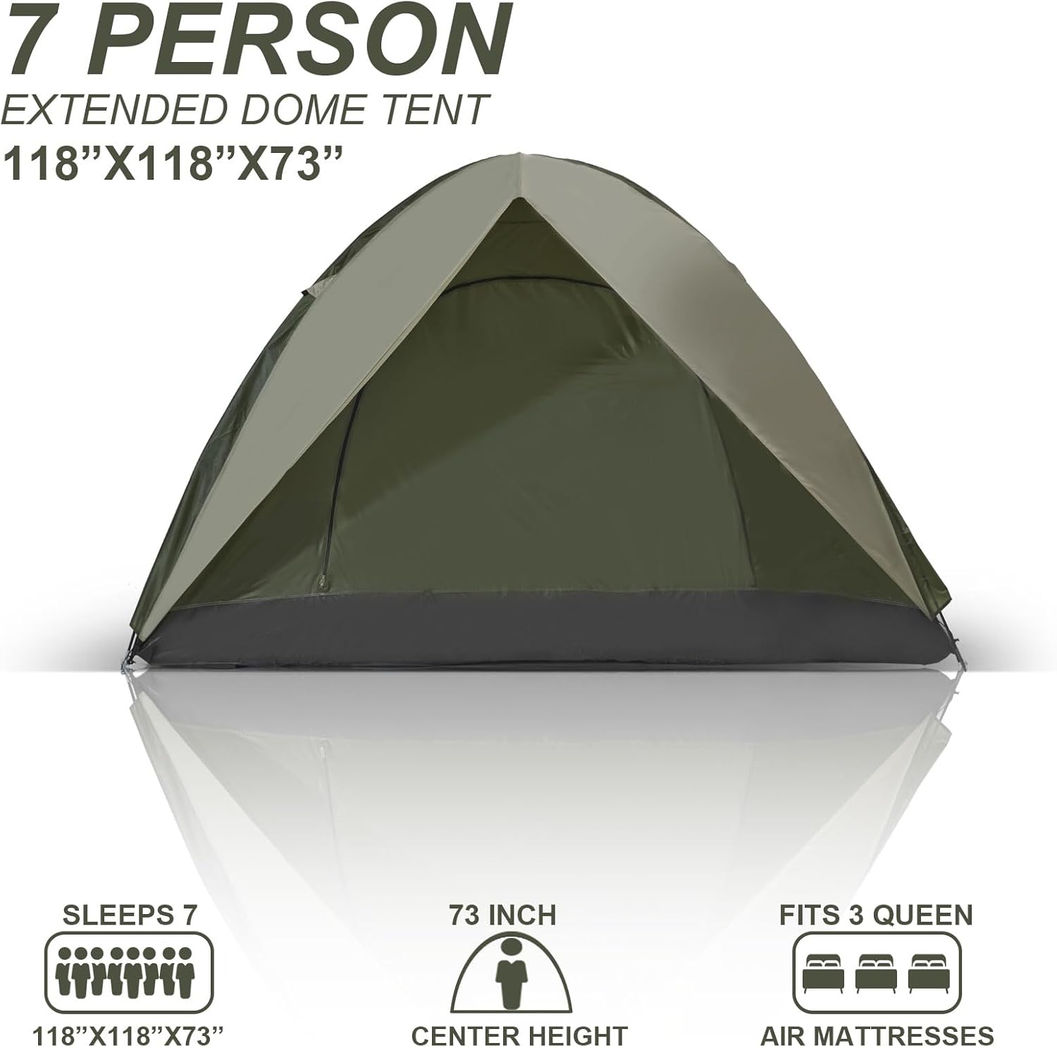 【Spacious 7 person space】:This large tent comfortably fits 3 queen air mats and other camping gears, provides large space for outdoor use. The 76″ center height provides a lot of room to move around. Perfect for families camping outdoors to enjoy a pleasant time, this is an ideal choice.
