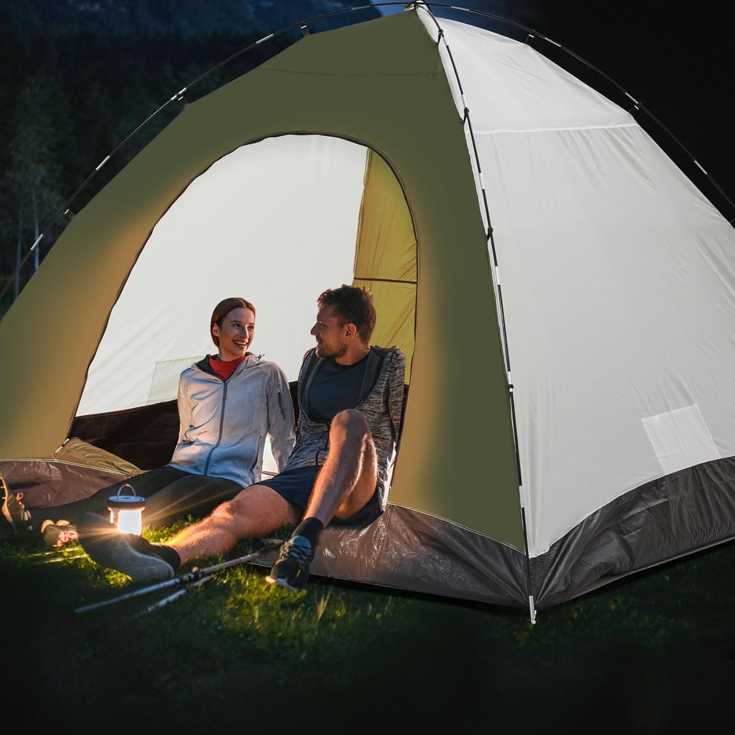 【Waterproof & windproof】:The inner and outer layers are made of 190t anti-tear polyester fabric, and the outer layer is coated with pu1500mm coating, which has excellent waterproof performance. Strong fiberglass poles ensure solid stability, hold up waterproof camping tents, withstand strong winds, stability as a rock.