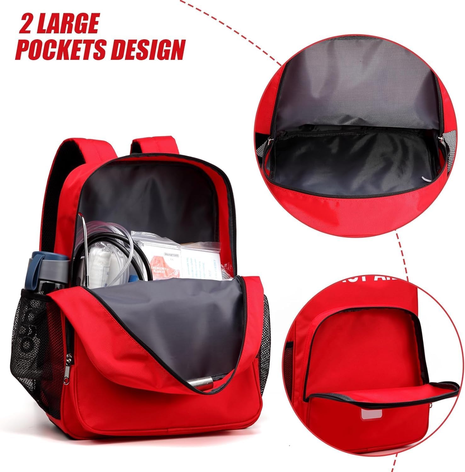 LIGHTWEIGHT BACKPACK: The first aid backpack empty large is made of lightweight material and mainly features two large pockets, which can accommodate a lot of medical supplies and is convenient for daily carrying and going out.