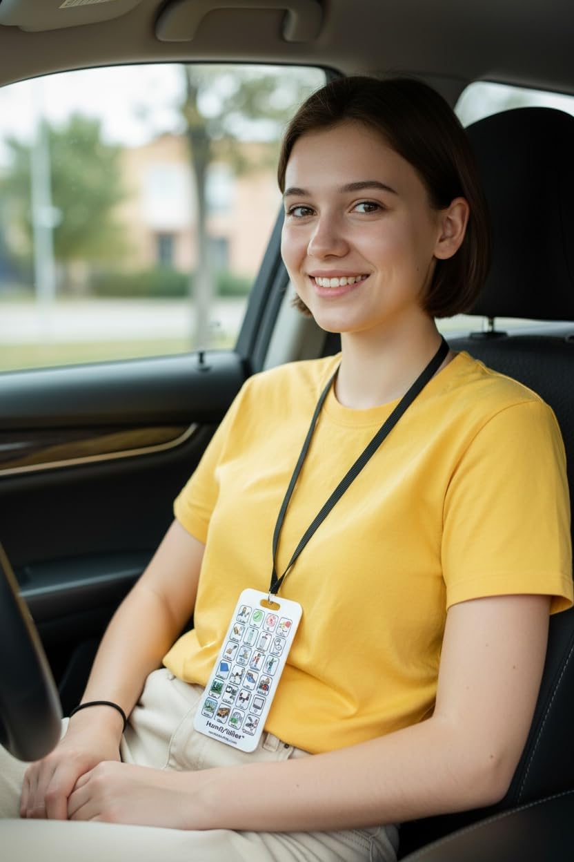 Portable, Wearable & Safety-Focused – Compact 3″ x 5.5″ size fits small hands and travels anywhere. Includes space on the back for contact details, turning the board into a communication aid and ID tag in public places.