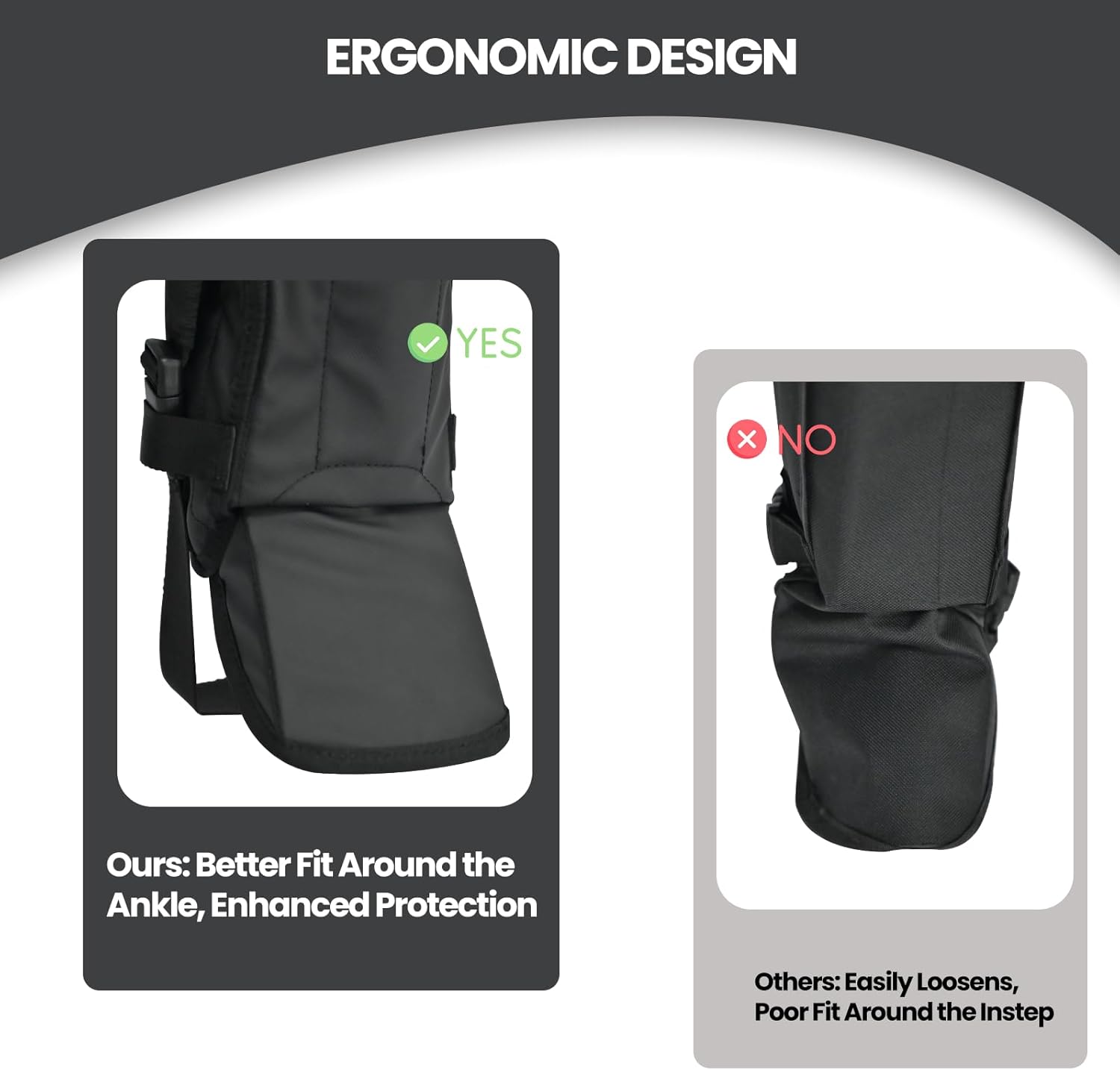 【Adjustable Fit with Ergonomic Comfort】 The ergonomic cut and adjustable buckle ensure a snug fit for calf sizes between 12 to 16 inches. These gaiters for men and gaiters for women stay secure without restricting movement, providing comfort and protection in all-day wear.