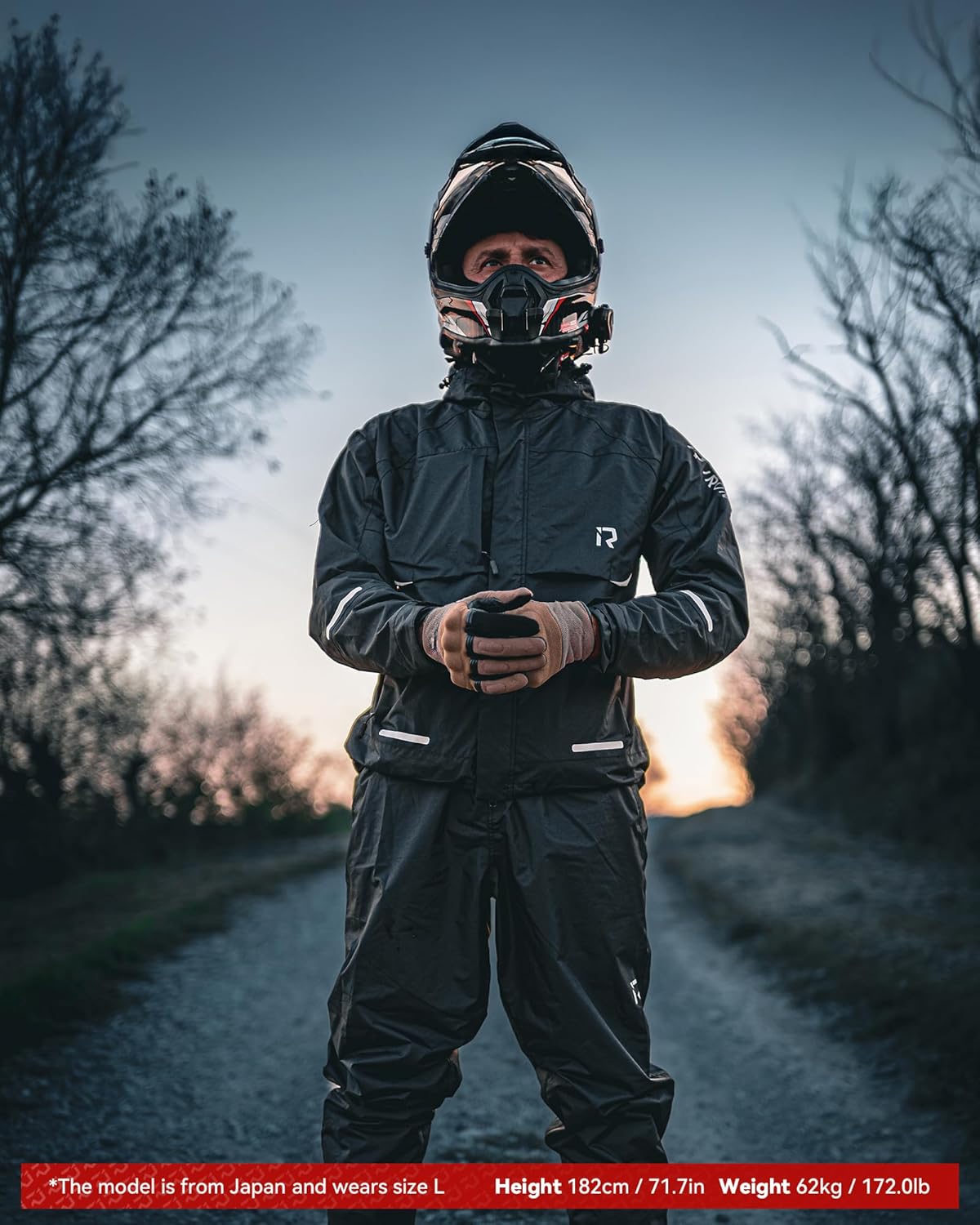 The video showcases the product in use.The video guides you through product setup.The video compares multiple products.The video shows the product being unpacked. motorcycle rain suit Merchant Video
