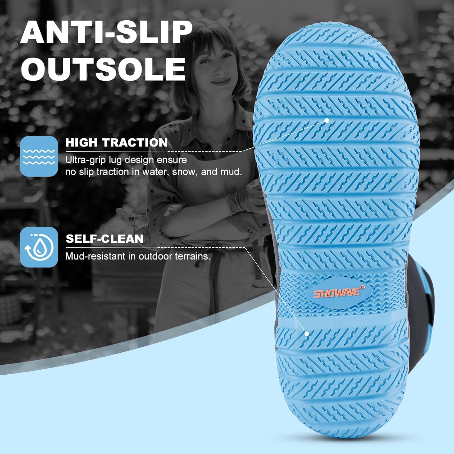 SHOWAVE WOMEN RAIN BOOTS MID CALF RUBBER FOOTWEAR GARDENING