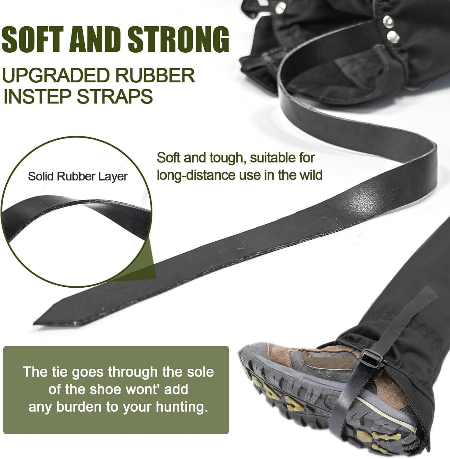 High Quality: The BZTAC Tactical Hunting Gaiters are made of ultralight, waterproof, breathable, tear-resistant, and puncture-resistant polyester ripstop material for maximum breathability and durability. The strong rubber under boot strap belt is designed for long-term use, while the high gaiters provide total protection when walking through rough terrain