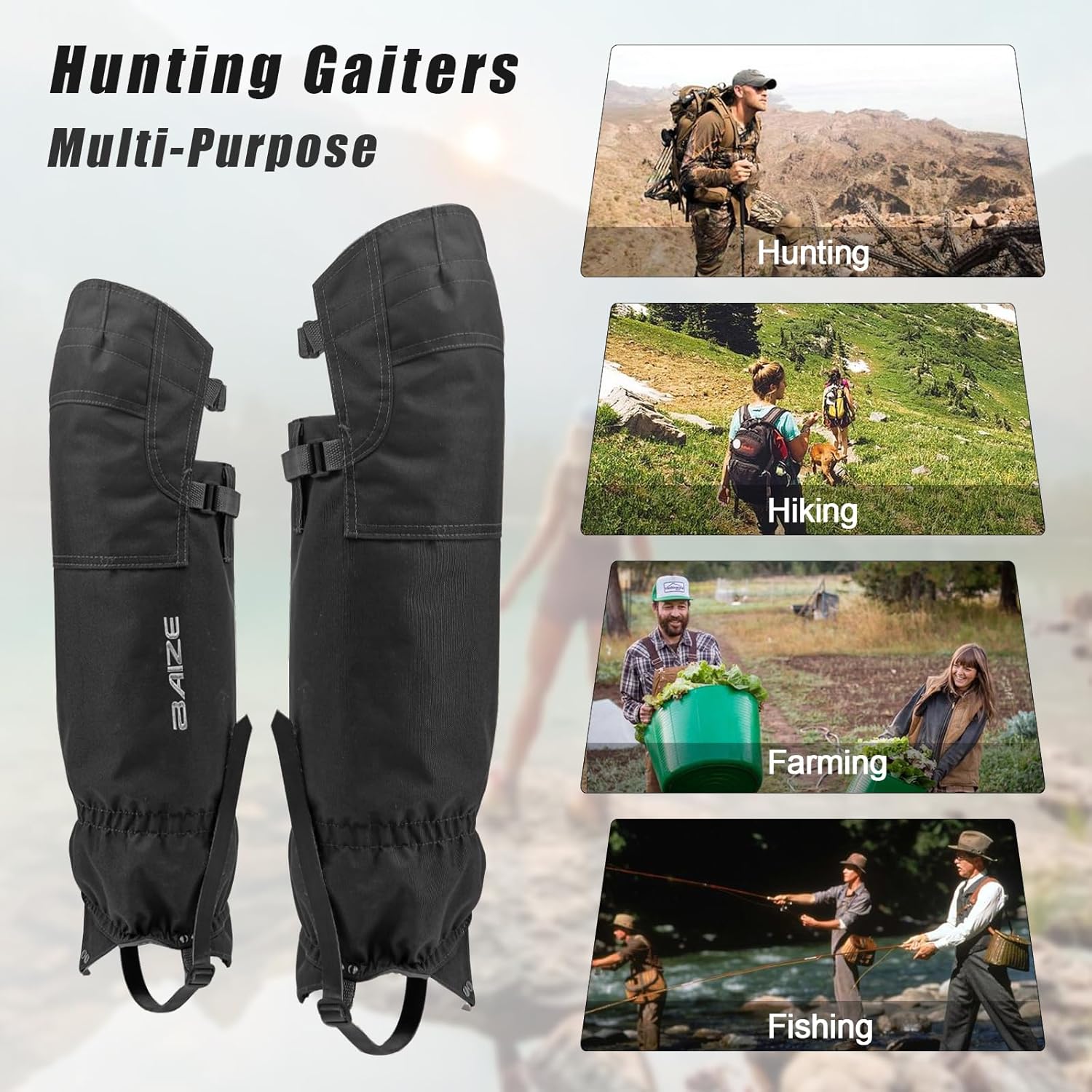Lengthened Design for Better Knee Protection: The Baize Tactical Hunting Gaiters have added knee protection, made from the same tough outer fabric but lined with a soft cotton lining for better comfort and movement. This design is ideal for hunters who need to kneel on the ground and shoot without soiling their knees