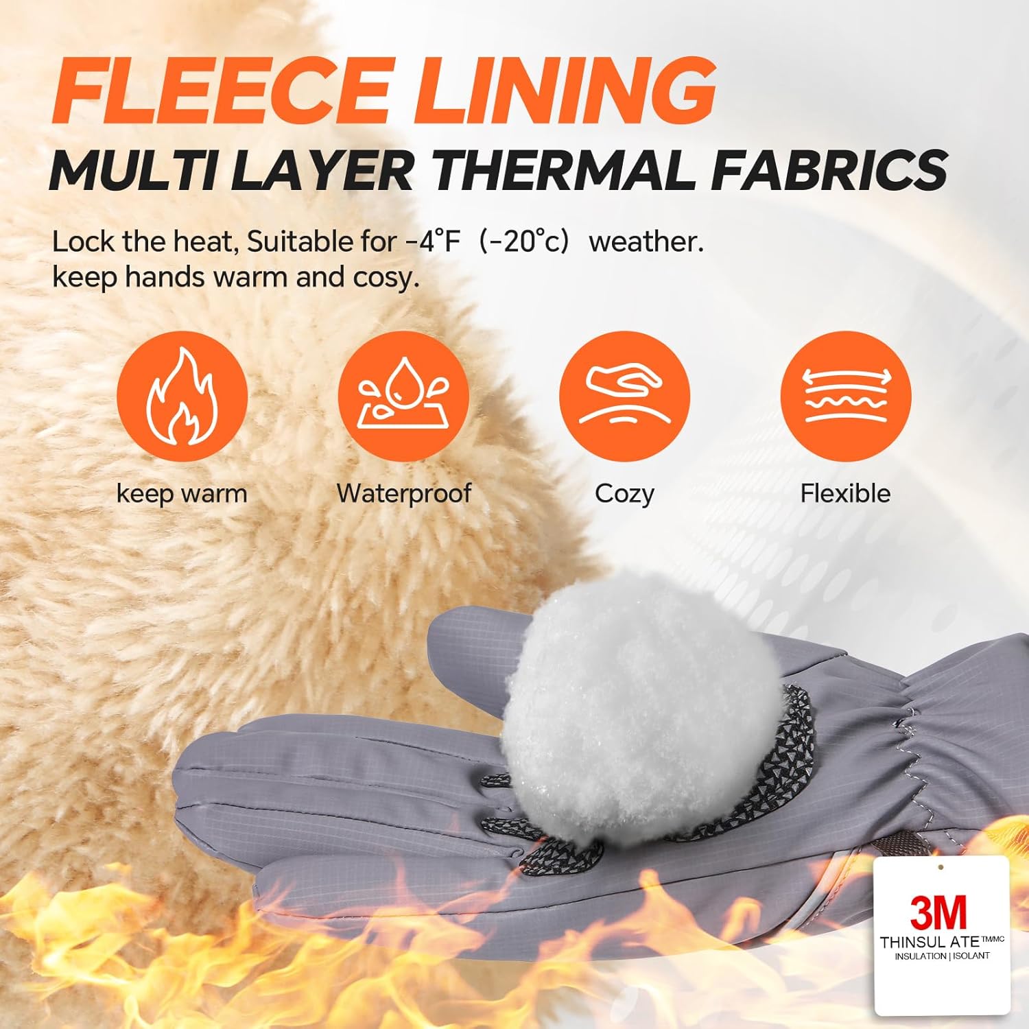 Windproof, Waterproof, and Flexible: Gloves for cold weather, made from premium soft fabric, these lightweight, windproof, water-resistant waterproof insulated gloves keep your hands warm and dry without sacrificing comfort, even on snowy or drizzly days. Perfect for daily life, outdoor activities, and work, warm gloves ensure you feel safe whether shoveling snow, cycling, driving or enjoying outdoor chores and sports