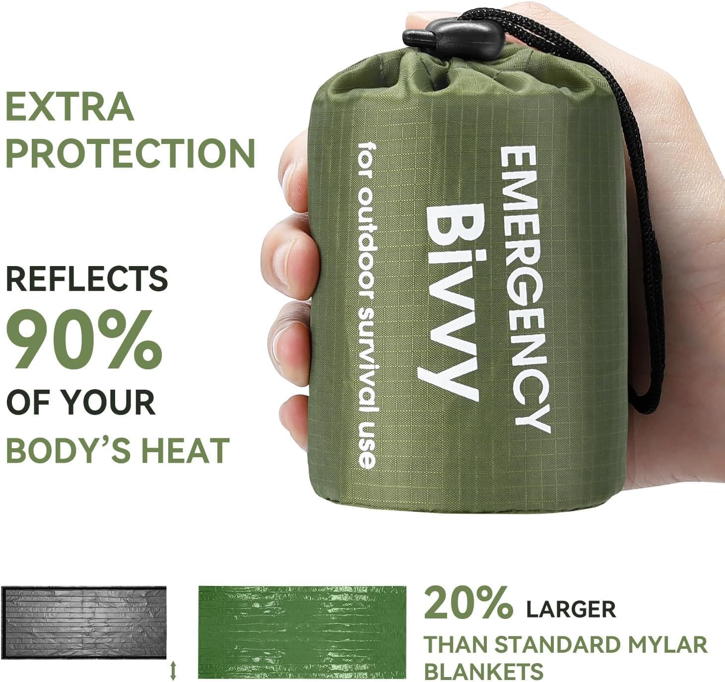 5 Crisis-Ready Applications: Bivy Sack Substitute – Wrap like bivy bag for full-body coverage vs sleeping bag sack Emergency Tent/Shelter – Combine with rope as life tent or survival tent Vehicle Safety Kit – Stash in emergency blanket for car (meets AAA recommendations)