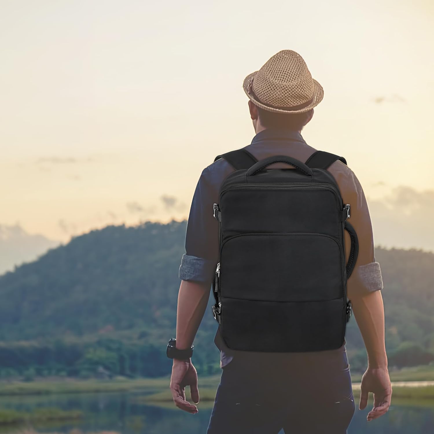 Comfy and Sturdy: Our travel back pack is made of high-quality composite fabric and effective waterproof, Comfortable airflow back design with thick but soft multi-panel ventilated padding, gives you maximum back support. Breathable and adjustable shoulder straps relieve the stress of shoulder carry on backpack . If you don’t want to carry it on your back, you can stow the backpack’s straps and it’s a suitcase luggage backpack