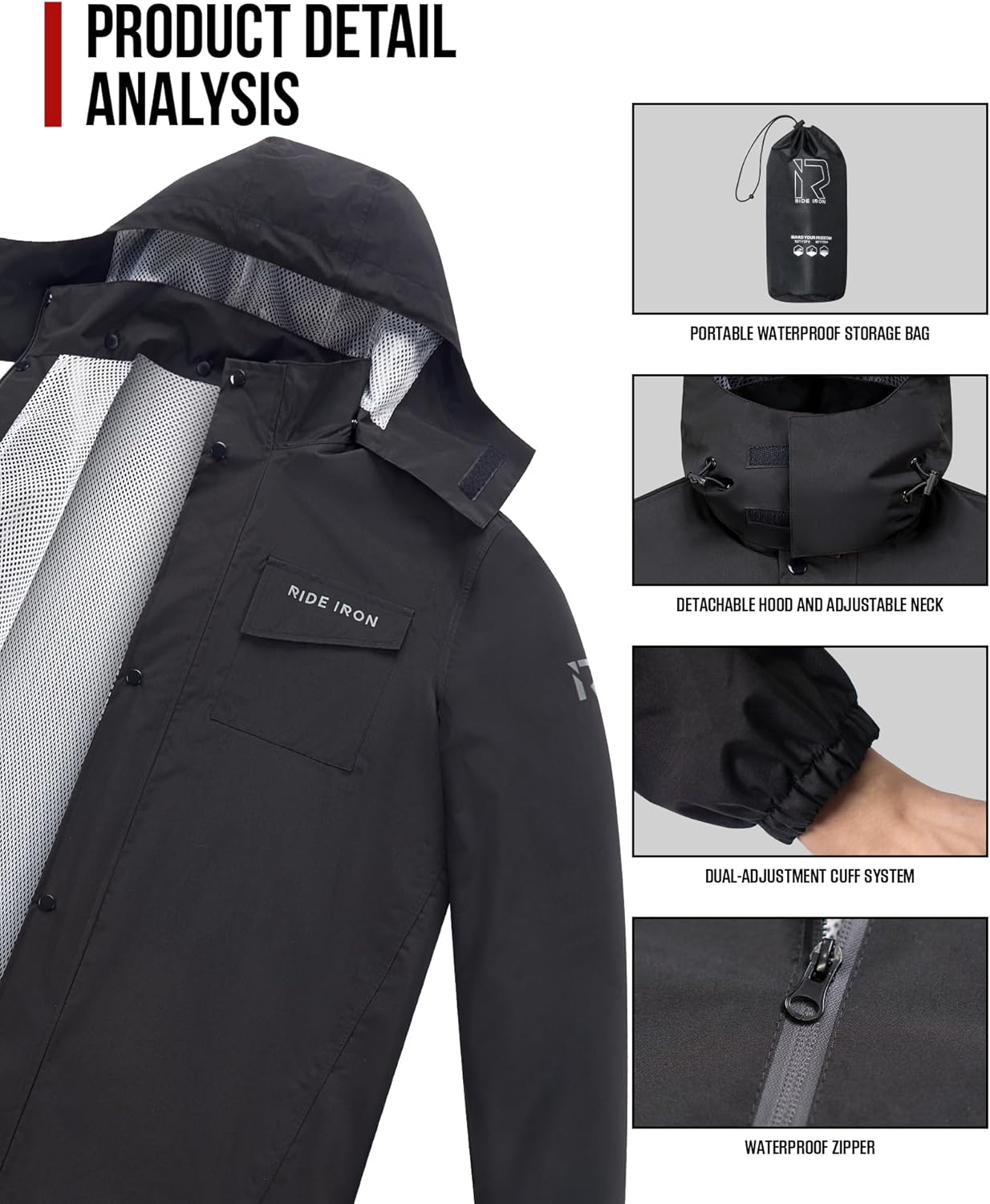 [From City to Trail] — Designed for life on the move, the light rain jacket transitions smoothly from urban commutes to outdoor escapes. Sudden rainfall? Windy walk? No problem. Stay protected and polished wherever the day takes you—RIDEIRON raincoat is a must have for men’s lifestyle. It’s suitable for a variety of scenarios – everyday, cruise travel, city travel, commuting, walking, hiking, camping and more. It is also an ideal choice as a gift for family or friends during various holidays.
