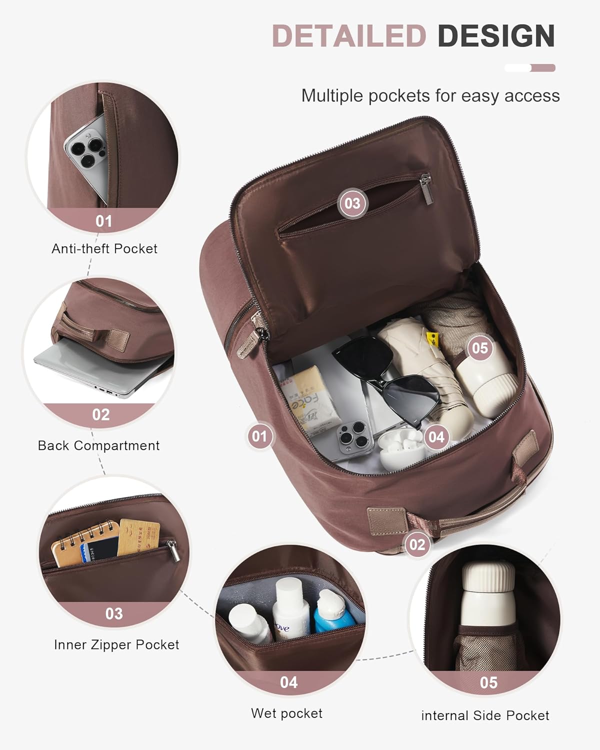 COMFORTABLE :This backpack has an improved shoulder strap, the backpack straps can be adjusted quickly and are able to create a customized fit after a long period of wearing. The backpack comes with a leather-wrapped handle, which is practical and easy to carry on the trip.