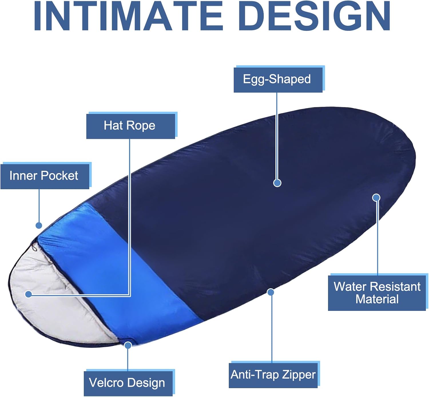 Egg Shape for Ultimate Comfort: The egg-shaped sleeping bag features a unique ergonomic design that provides a more comfortable and secure fit than regular sleeping bags, embracing your body in natural curves for increased comfort and support throughout the night.