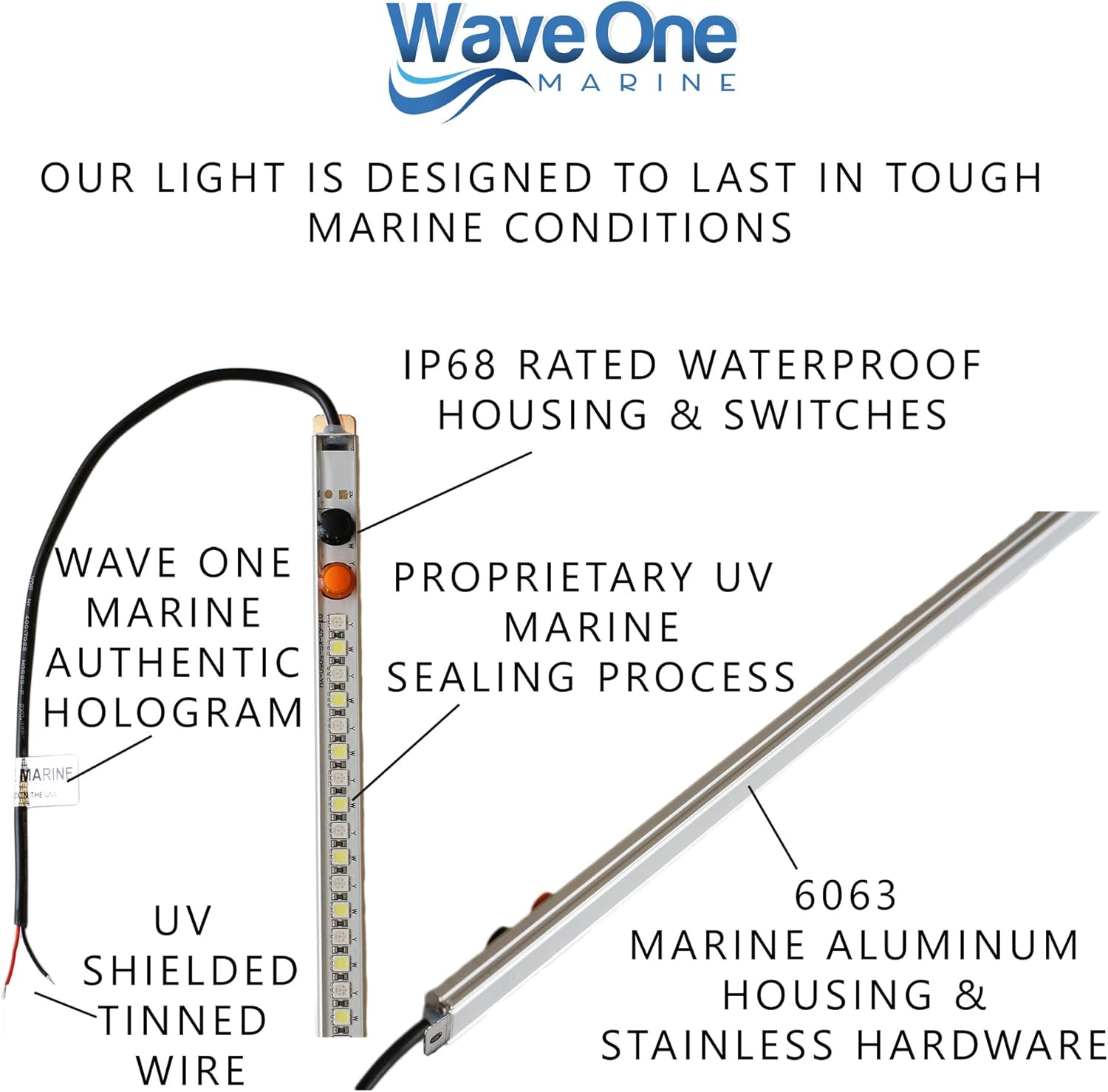 IP68 Waterproofing All Stainless Hardware 6063 Marine Aluminum Housing Dual Onboard Switches Proprietary UV Stabilized Sealing Compound LED Expected Life Of Over 25,000 Hours Wave One Authentic Hologram