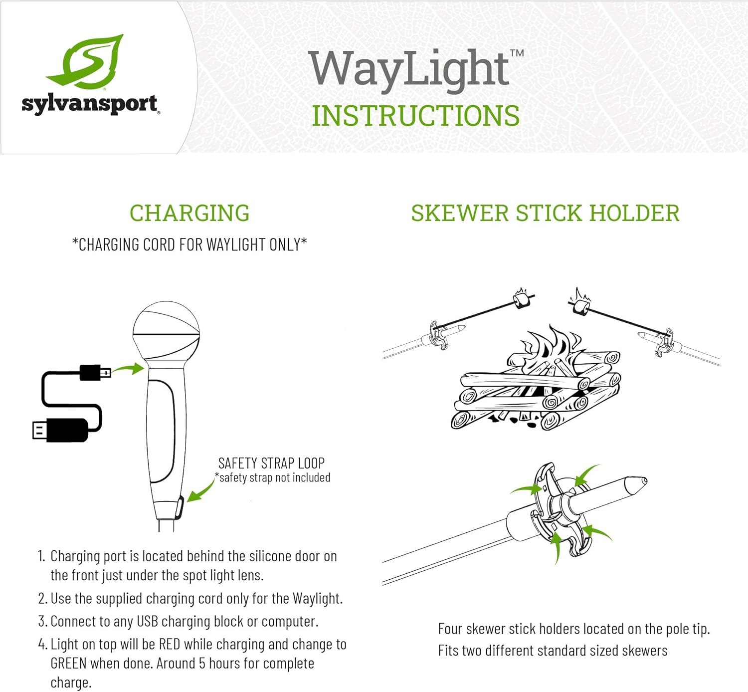 Pole Tip Stakes for Campsite Illumination, Bamboo Skewers for Marshmallow Roasting, and Robust handle and wrist attachment for hiking and walking