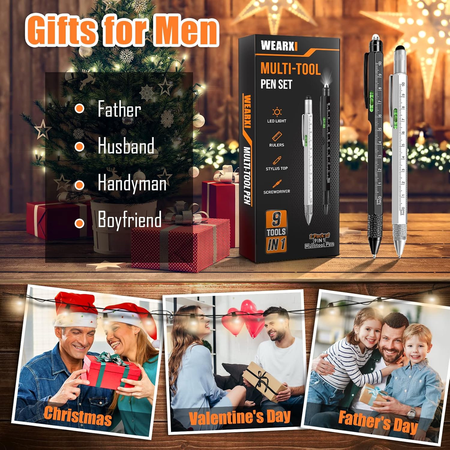 WEARXI multitool pen set with a nice gift wrap will be your best choice as a gifts for men, cool gadgets for men would be the coolest and most novel gift for dad, fathers day gifts, birthday gifts for men, mens valentines gifts,stocking stuffers for adults/women/kids/teens.