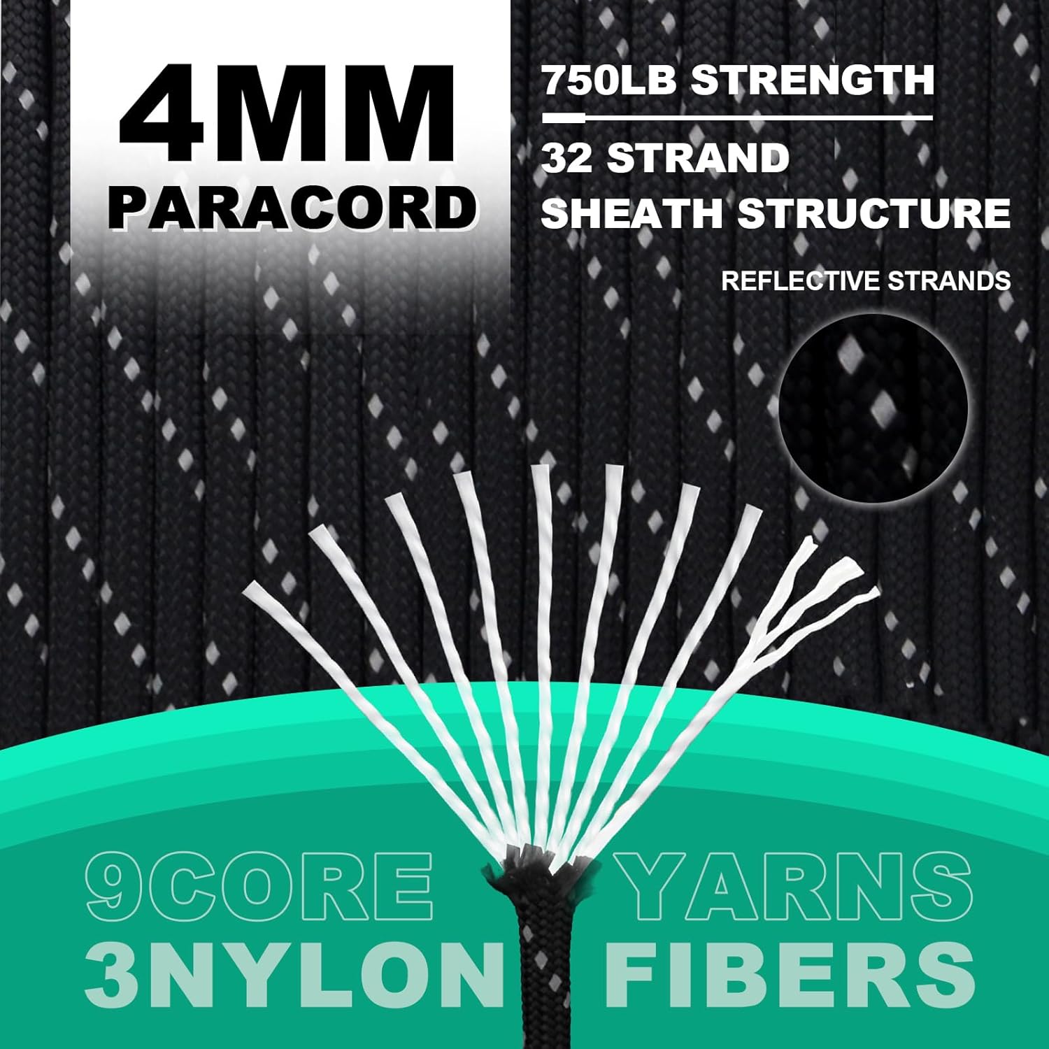HIGH-QUALITY & DURABLE:Meet our high quality paracord rope—it’s tough, super flexible, and can handle a serious pull without breaking. No problem. Our rope is waterproof, UV-resistant so it won’t fade, and even has reflective strips for those dark, nasty nights. Even if you get turned around in the dark, the reflective strips make sure you’re seen, getting you help when you need it most.Whether you’re setting up camp, or are in a full-on emergency, this paracord has your back. It’s the trusty safety rope you can count on when it matters most.