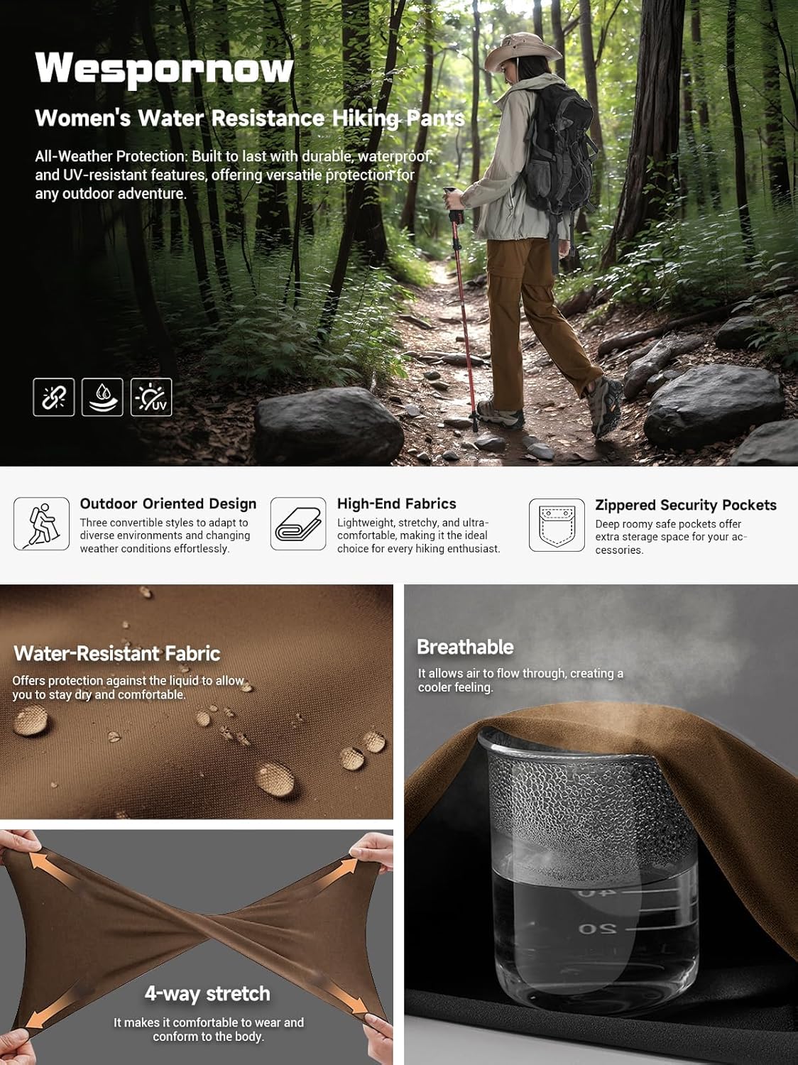 π₯Ύ Wespornow Women’s-Hiking-Pants Convertible-Zip-Off-Quick-Dry-Pants for Cargo, Camping, Travel, Outdoor, Fishing, Safari β Review, Key Features & Current Price