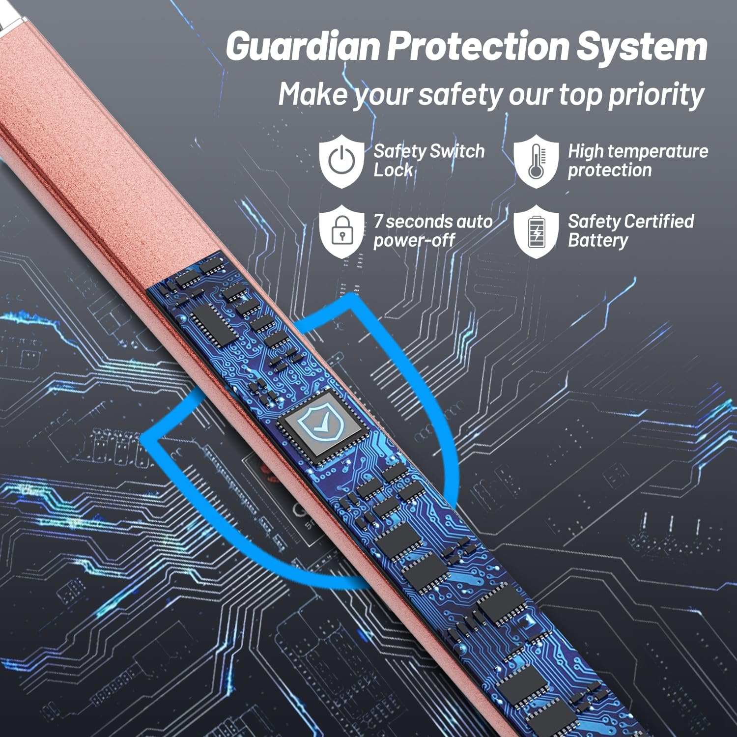 【Advanced Safety Features】 This rechargeable lighter is equipped with 7-second auto shut-off, overheating and overloading protection, and a safety lock. These comprehensive safeguards create a secure barrier for your family, offering complete peace of mind during use.