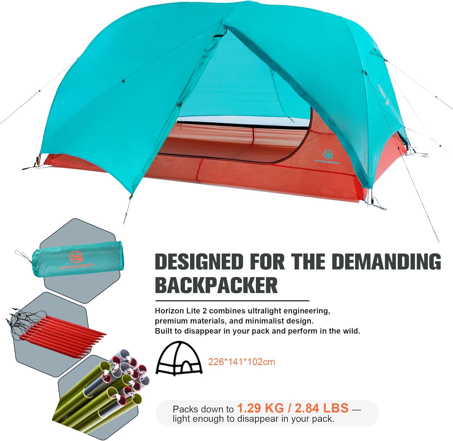 Ultralight & Freestanding: Windquester backpacking tent weighs just 1.29kg (2.84 lbs), 2 person ultralight dome tent balances freestanding stability with compact packability—ideal for hikers, thru-hikes, and bikepacking.