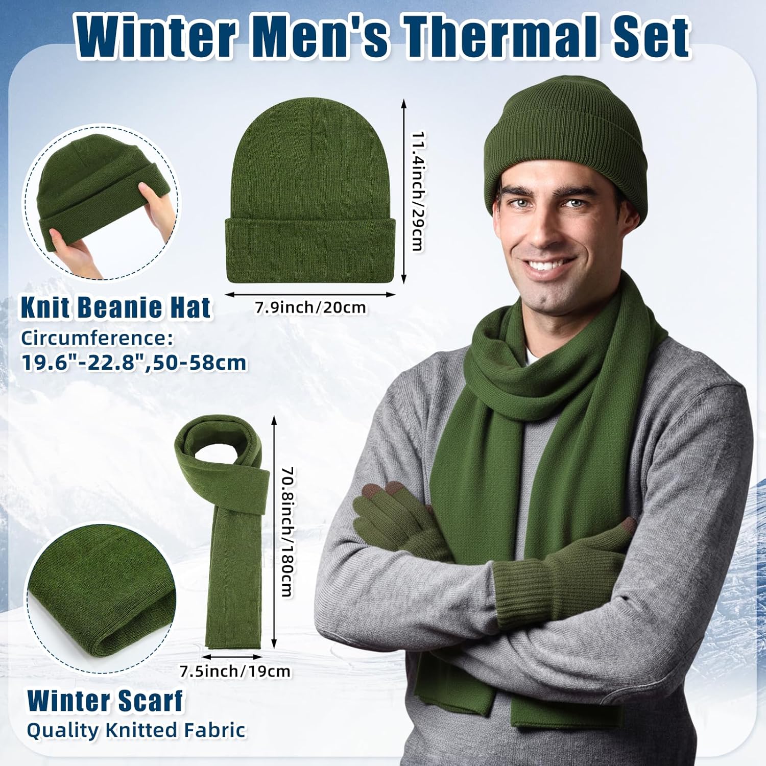 Matching Knit Accessories: hat, scarf, and gloves in coordinating army-green tones provide a clean, minimalist look; Soft insulating knit fabric delivers warmth and comfort while the black versatile socks suit daily wear