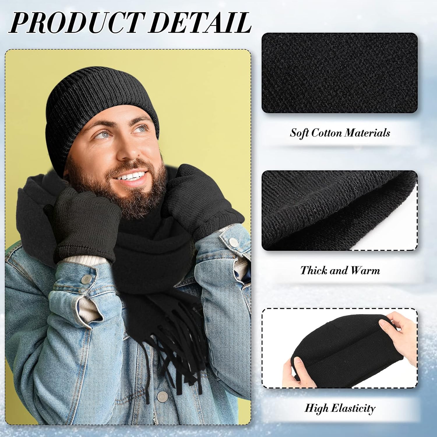 Proper Size: the beanie for men and women measures about 8 x 7 inches, the warm gloves for men and women are about 7.87 inches in length, the scarf is about 59 inches in perimeter and 9.84 inches in length; With good elasticity, they are suitable for most unisex adults, not too tight or too loose, to keep you warm during the cold winter months