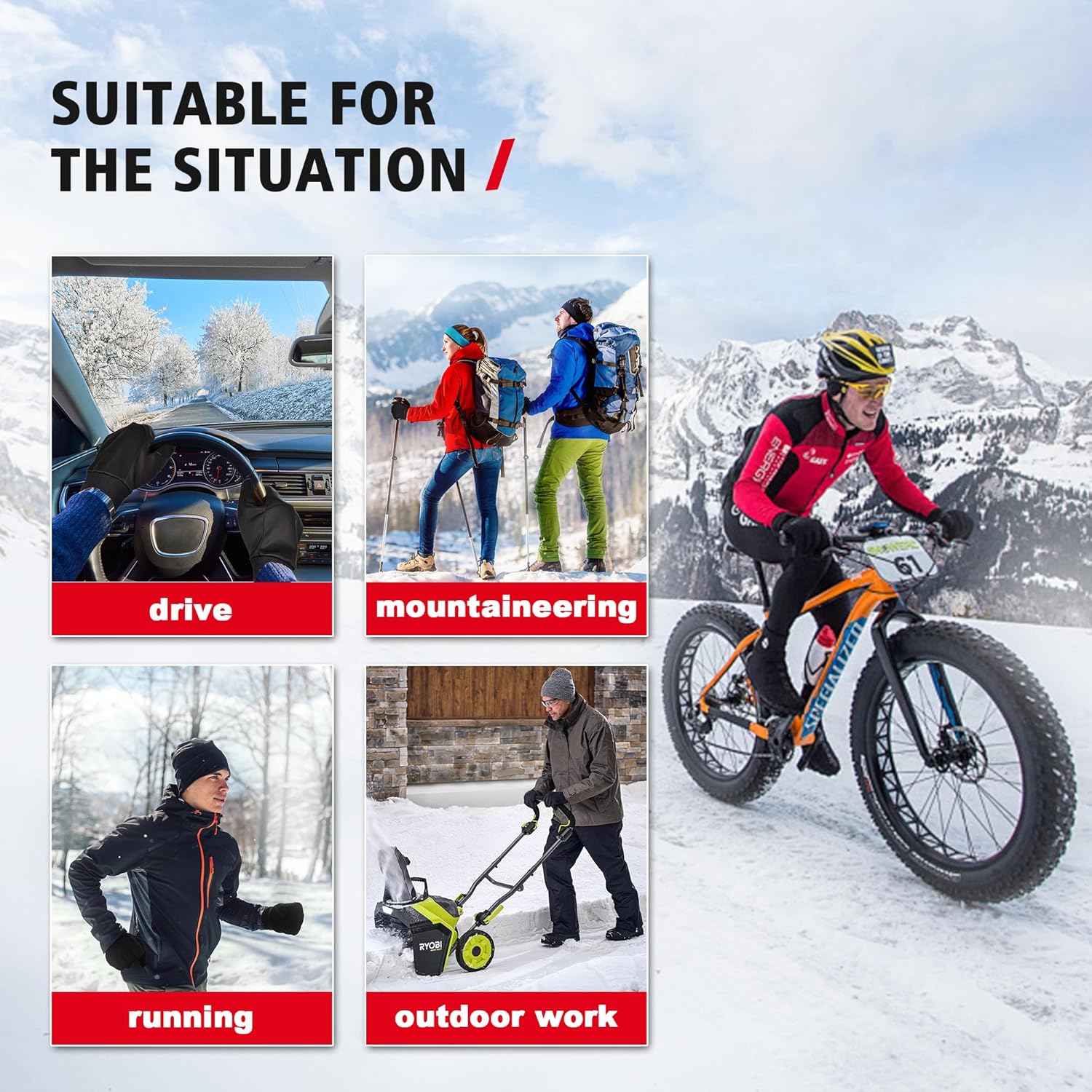 【Touch Screen Design】Made from conductive fabric, Winter touchscreen gloves designed specifically for men and women,, you can make calls, reply to messages, and avoid cold hands without removing the gloves.