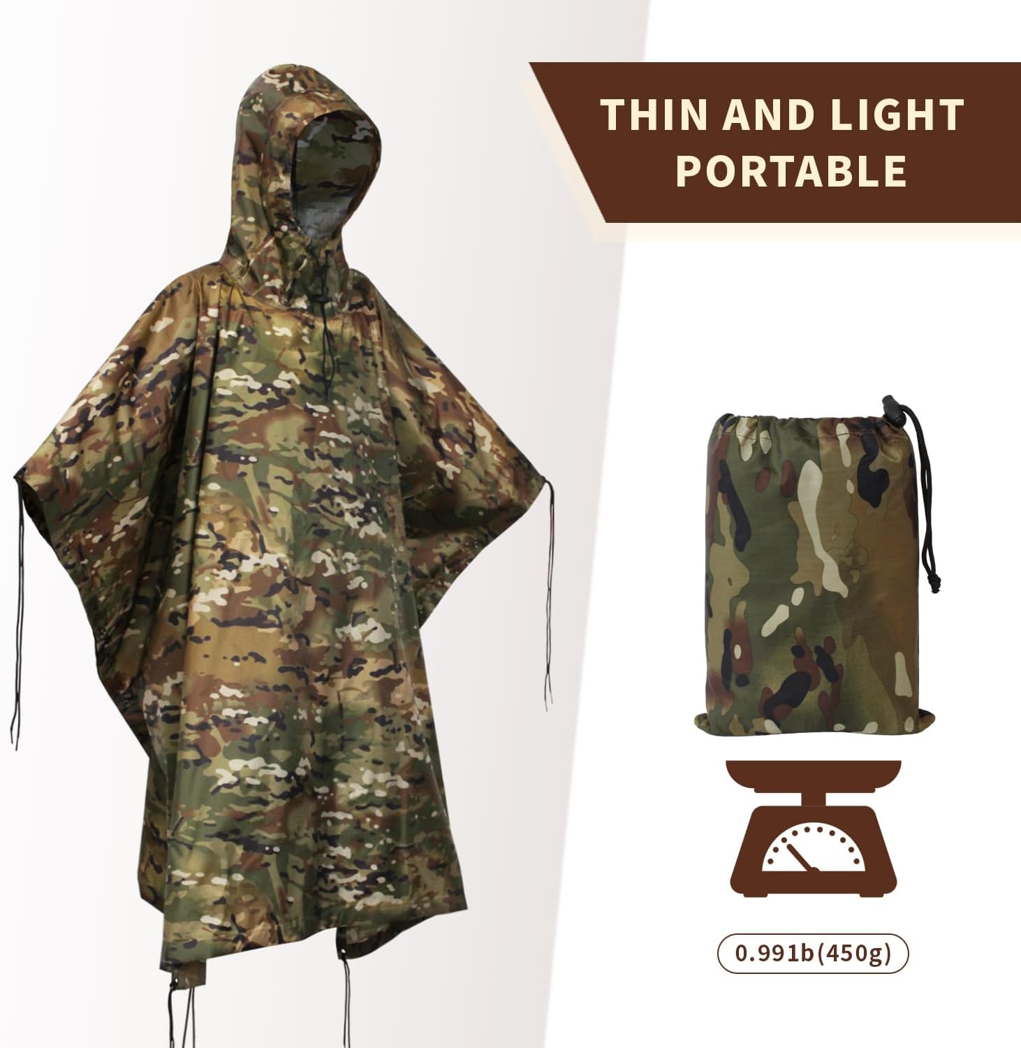 【Multi-Use Poncho】Features 8 heavy-duty metal grommets,and also facilitate tie cord connections for use as a floor mat, cape,a simple shelter and canopy,hammock cover,privacy screen, beach blanket, and more.Good for the traveler, outdoor enthusiast, or for any outdoor activity with rain on the horizon.