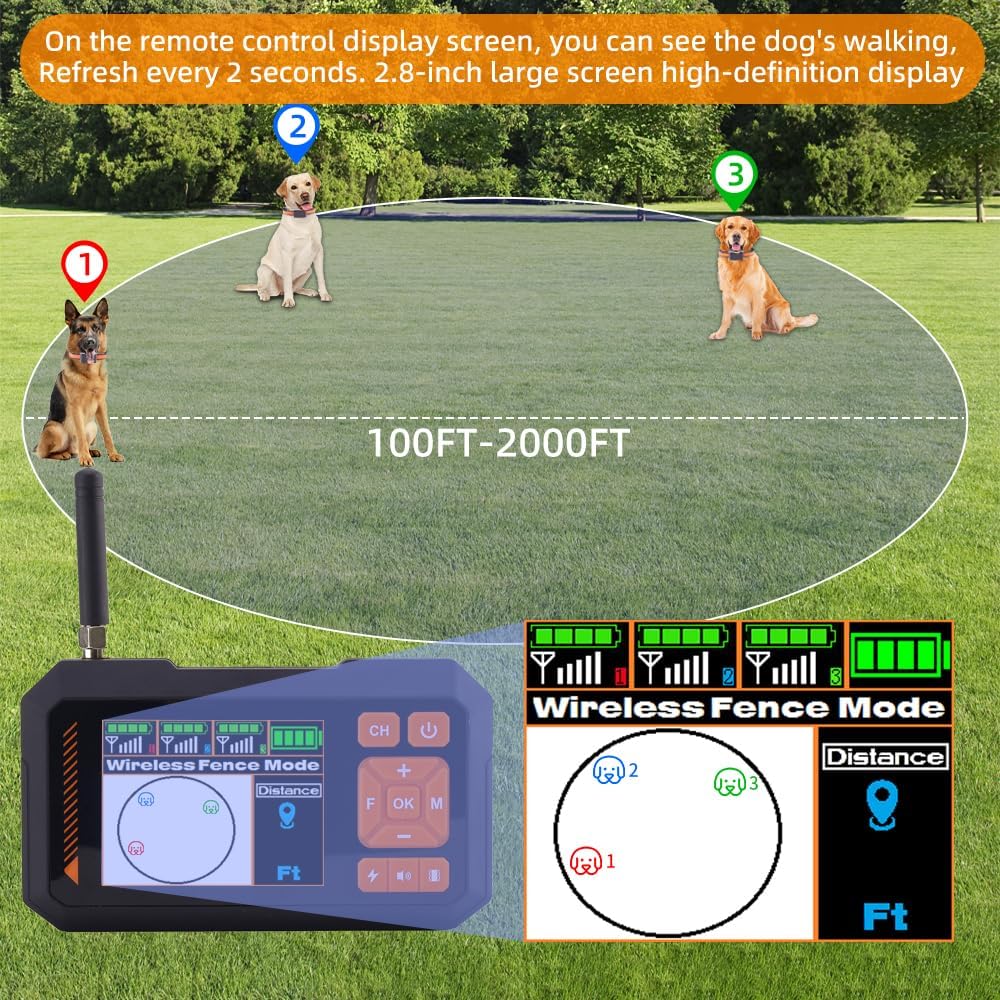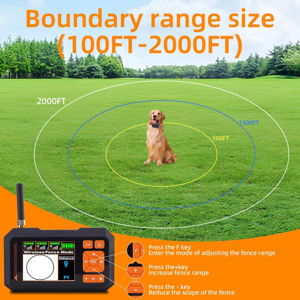 Flexible Boundary Control – Set a custom fence range from 100 to 2000 feet, giving your dog the freedom to play while keeping them safe.