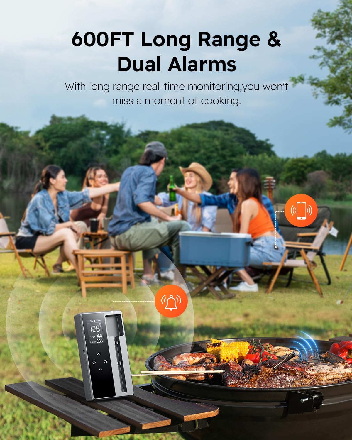 100-HOUR ENDURANCE CHAMP – Power through long cooks with up to 100 hours on a single charge. Perfect for slow-roasting turkeys, weekend BBQs, or camping adventures. Fast USB-C recharging ensures uninterrupted cooking freedom.