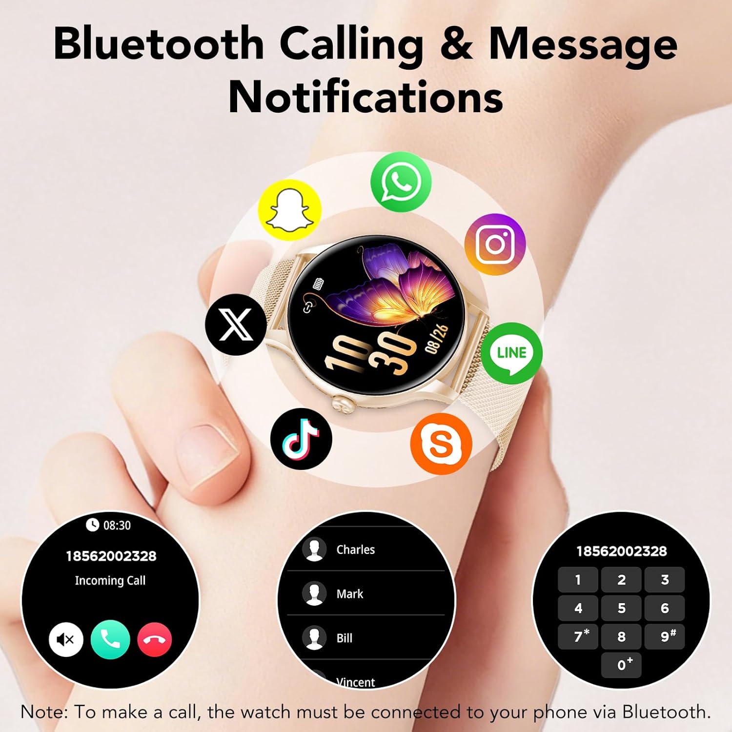HD Bluetooth Calling & Smart Message Management: Utilizing Bluetooth transmission technology and an intelligent noise cancellation system, this connected smartwatch delivers a high-definition calling experience. When message reception permissions are enabled, it fully supports text notifications from SMS and social apps (including Twitter, WhatsApp, Facebook, Instagram, etc.), ensuring you never miss important information. It also supports categorized message display, smart reminders, contact storage, and call history viewing.