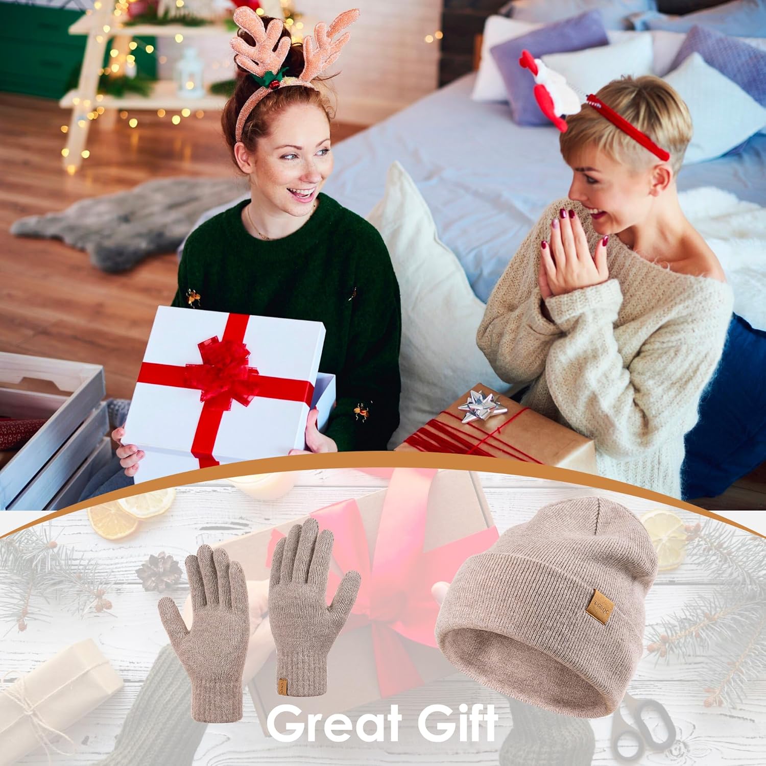 Customers find the scarf and gloves set to be of great quality, perfect for cold weather, and appreciate its super soft, nice material that feels great against the skin. The set is comfortable, looks great, and fits well, with one customer noting the knitting is nice and tight. While some customers say the size is spot on, others find it a bit large.
