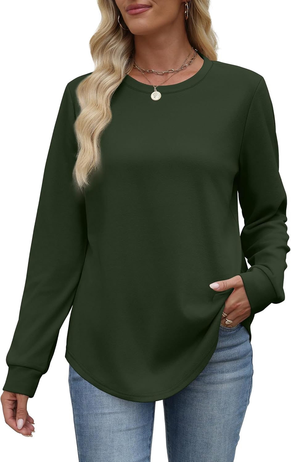 WIHOLL Tunic Sweaters for Women Fall Outfits 2025 Long Sleeve Shirts Curved Hem