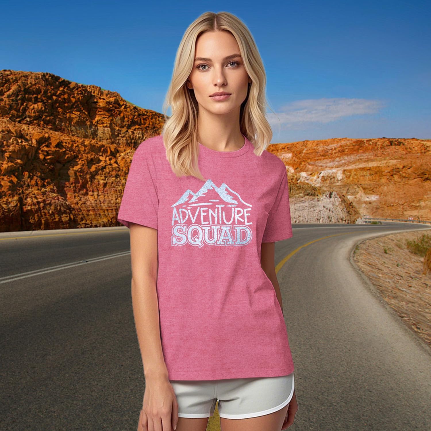 This hiking shirts women choice features “Adventure Squad” lettering and mountain graphics, making it a must-have for any adventure-seeking woman.