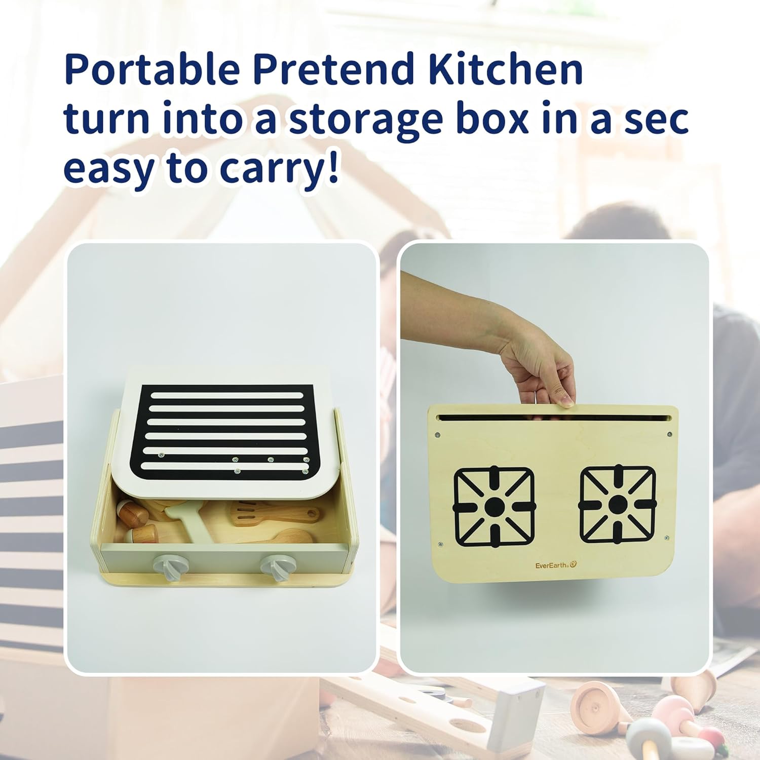 Compact Design – foldable and portable, a fun & unique take on wooden pretend cooking play. A transportable kitchen toy that’s perfect for kids to take anywhere.