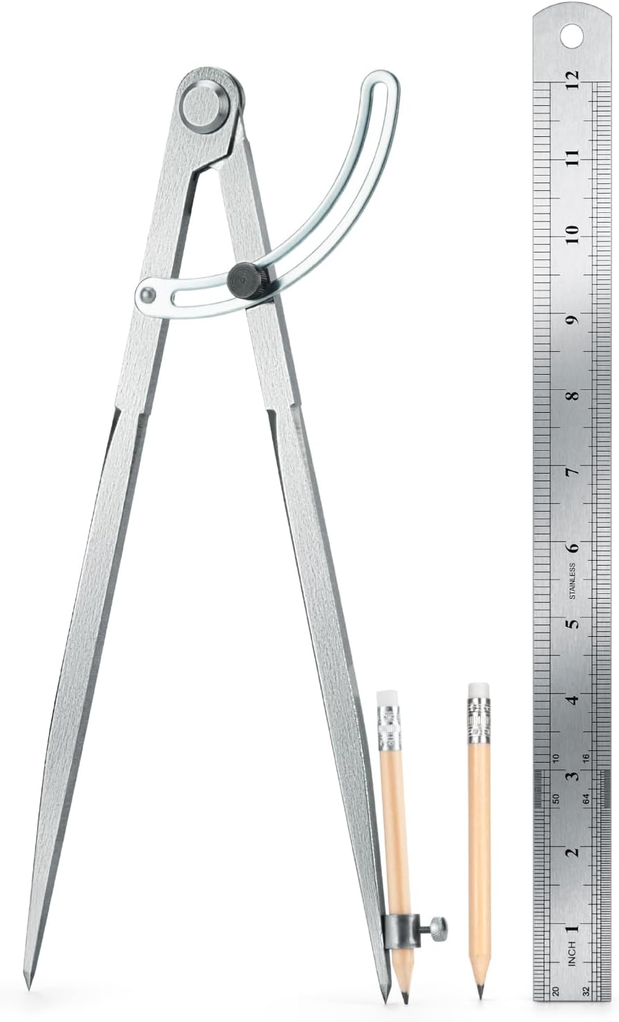 1.Woodworking compass tool:with a 12inch locking compass, two pencils and a 12inch ruler to meet all your drawing needs.