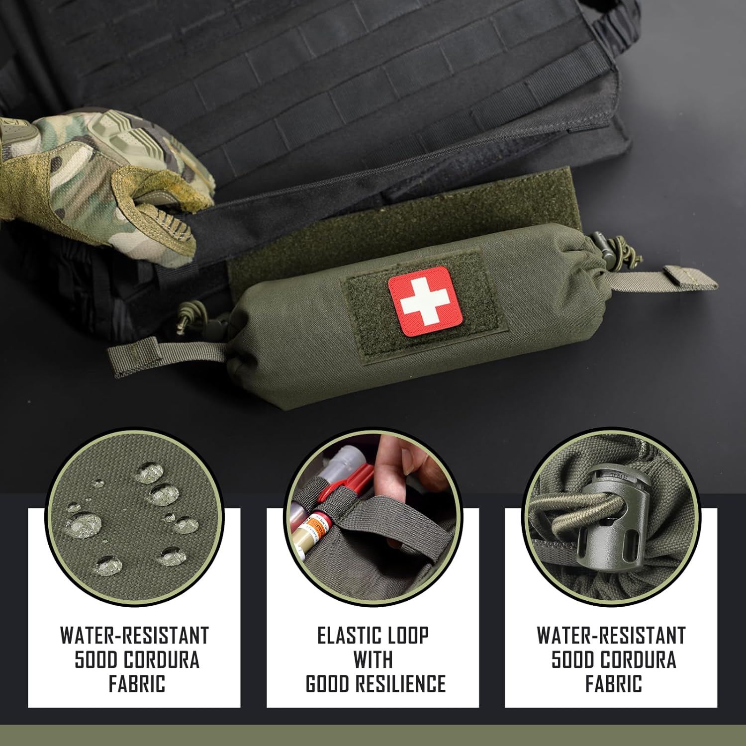 AMBIDEXTROUS INNER LAYOUT: Trauma Drop Pouch is designed with functionality in mind. EMT Bag features inside elastic bands to secure your gauze, markers, chem light, medical shears, and any medical supplies. The pouch is large enough to store your IFAK contents and trauma kits in an organized manner.