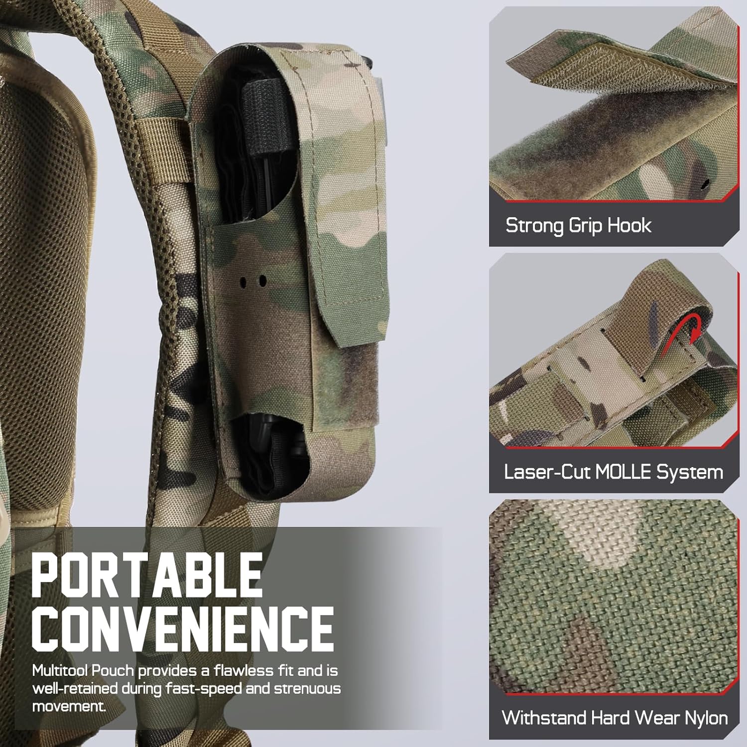 CUSTOMIZE FOR NEEDED: Flashbang Pouch has side lashing point support that you add the elastic band for secure retention of TQ. Multitool Pouch provides a flawless fit and is well-retained during fast-speed and strenuous movement. IFAK Pouch Instantaneously deploying your tourniquet during eventuality maximizes the chances of survival.