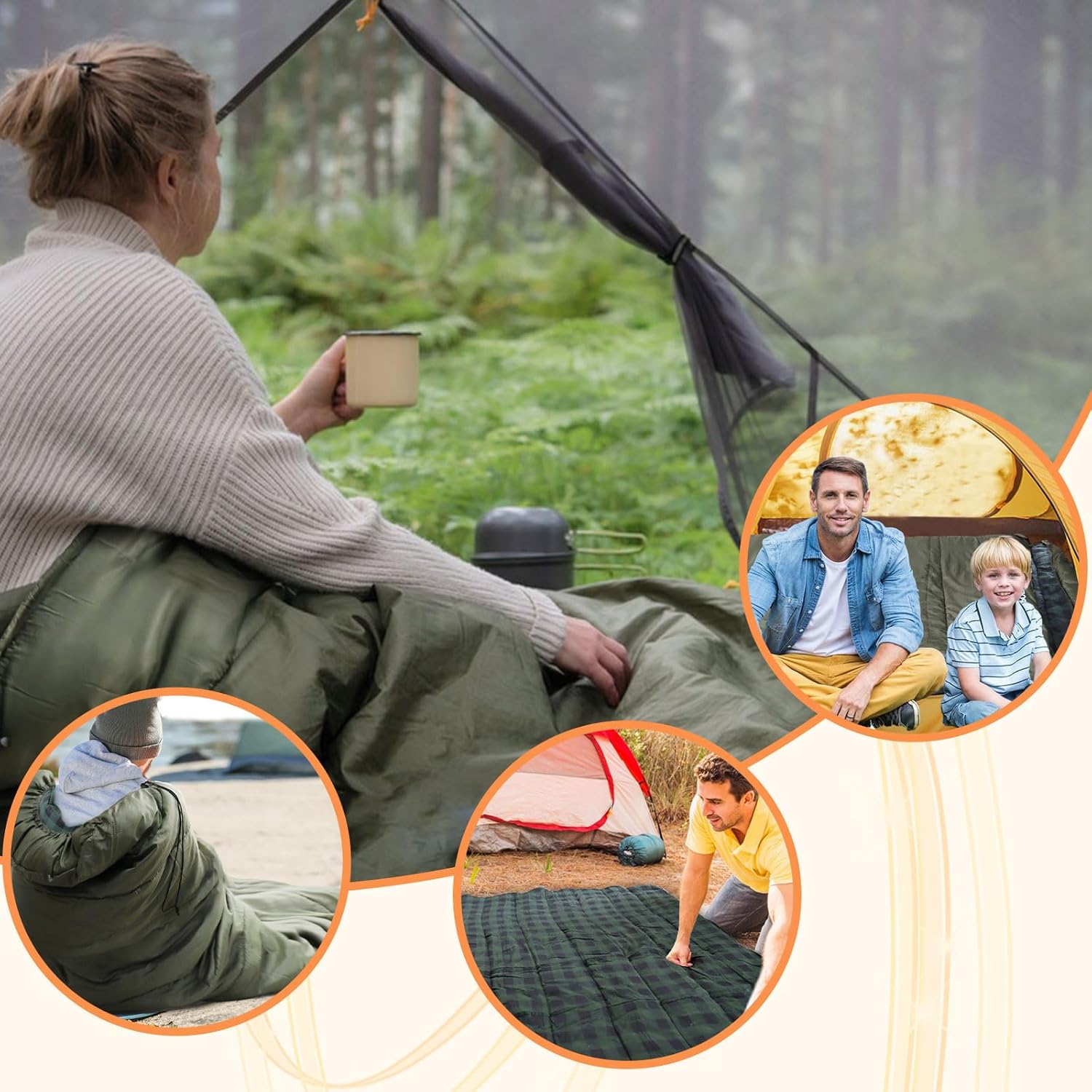 Multi-Functional Use: This sleeping bag offers versatility as it can be zipped together with another one (either on the left or right side) to create a double sleeping bag, providing couples or friends with shared sleeping space. Alternatively, it can be fully opened and used as a mat, increasing the versatility and flexibility of the sleeping bag.