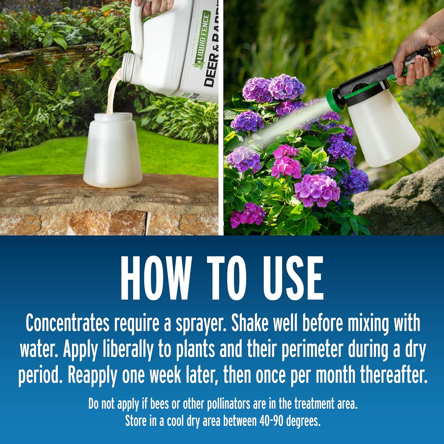 Apply year-round: No need to rotate with other repellent brands – animals’ natural aversion to Liquid Fence Deer & Rabbit Repellent2 will never diminish.