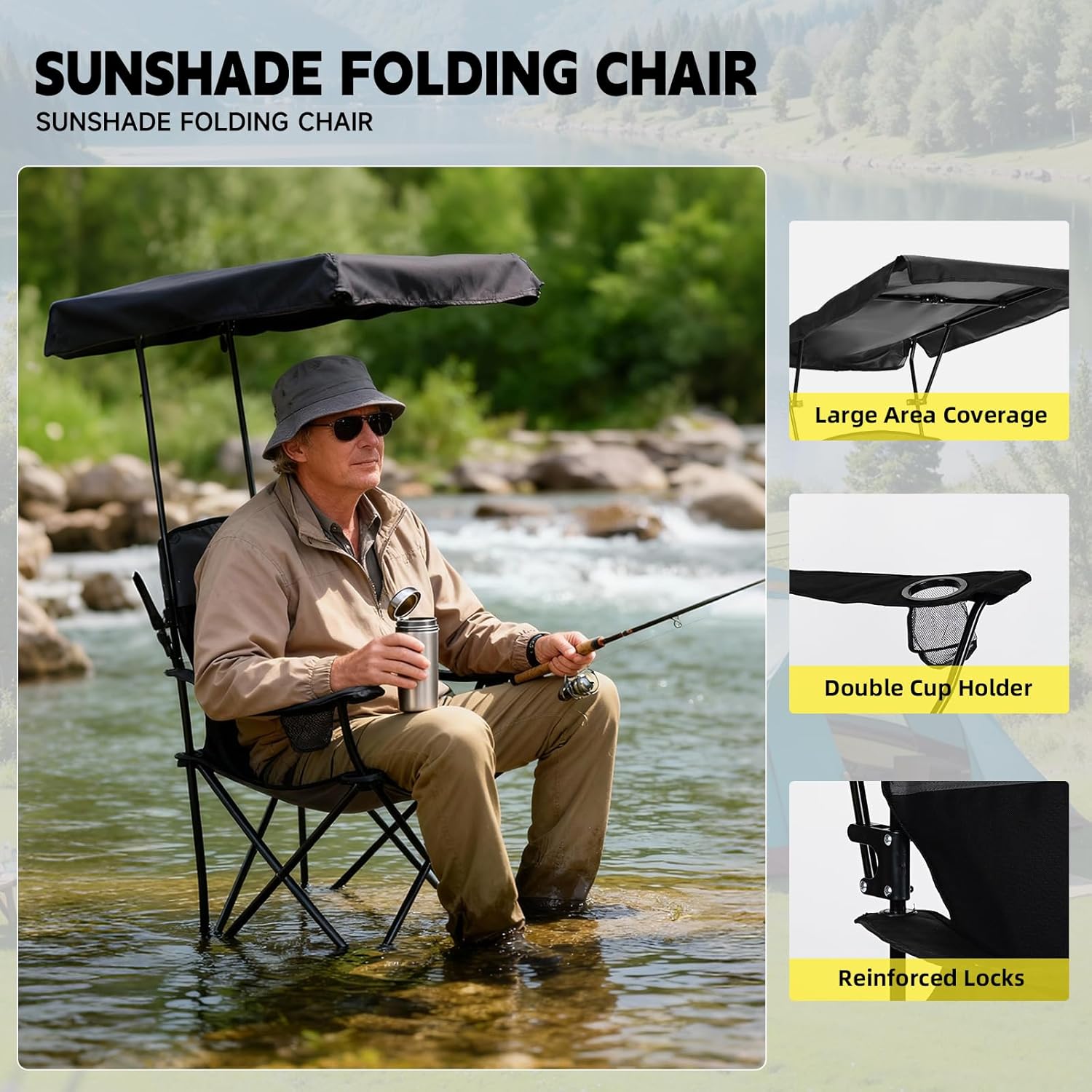 【Built for Anywhere】Use it as a camping chair, folding chair, lawn chair, travel chair, beach chair and more. Suitable for outdoor adventures, tailgating, fishing, backpacking, beach, picnic, sport games, car travelling, or just put it in the backyard, cabin, balcony, patio lawn parties.