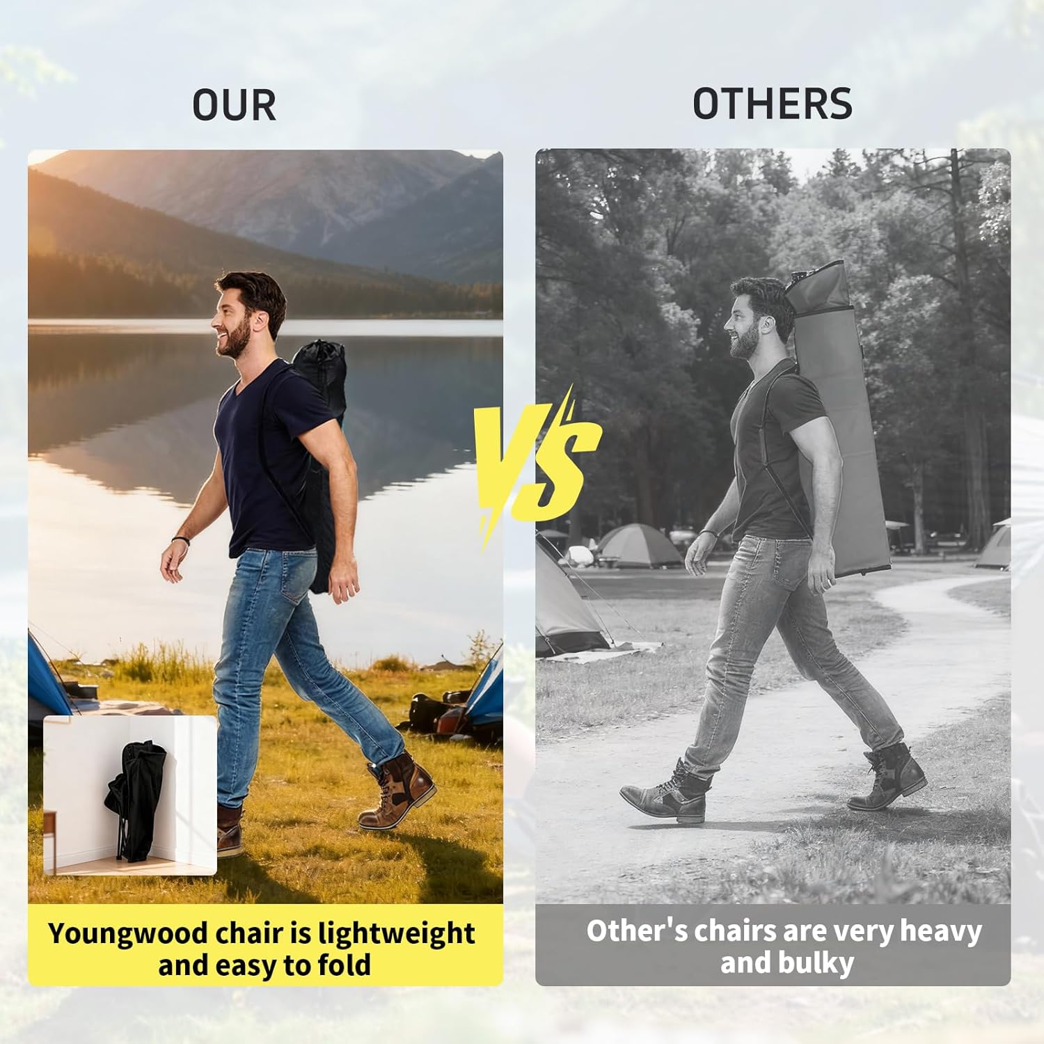 【Portable and Easy to Assemble】No worries about assembly and carrying. Setting up this chair is quick and effortless—simply take it out of the carrying bag and expand the frame to enjoy the comfort it provides. When folded, it measures only 39×6.2×6.2in and weighs a mere 11lbs, making it easy to embark on a pleasant journey.