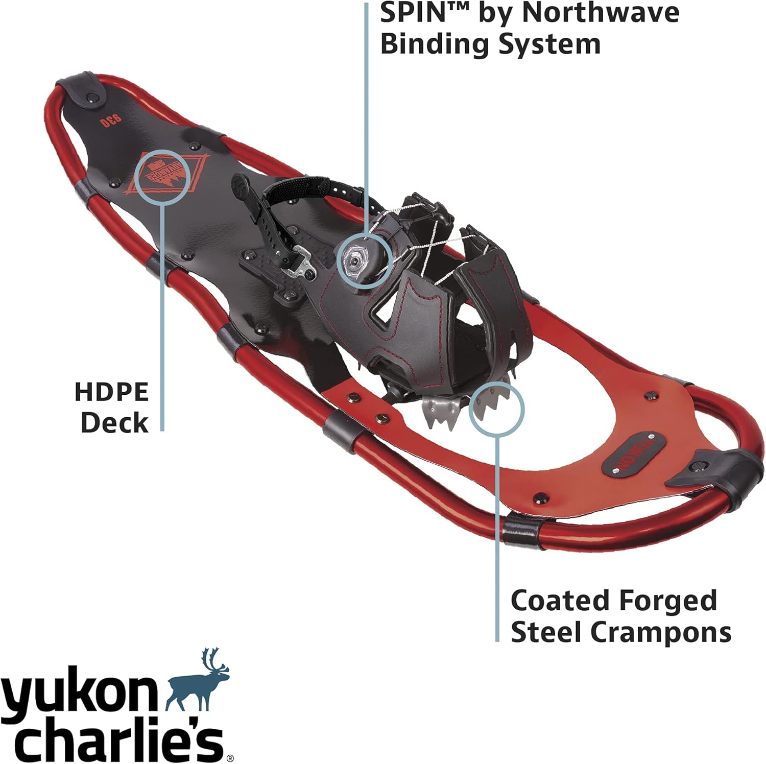Ultra strong 6000 Aluminum Rocker Frame provides strength and durability to the snowshoe