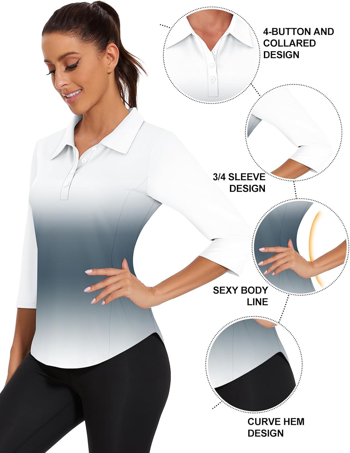 Zamowoty Golf Shirts Women 3/4 Sleeve Collared Shirts Quick Dry Tennis Tops