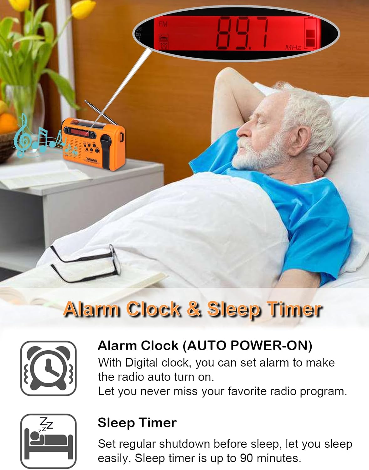 Digital Clock, Sleep Timer: The radio has a digital clock so you can get the time at any time. In addition, you can set to automatically shut down after 10-90 minutes of power on