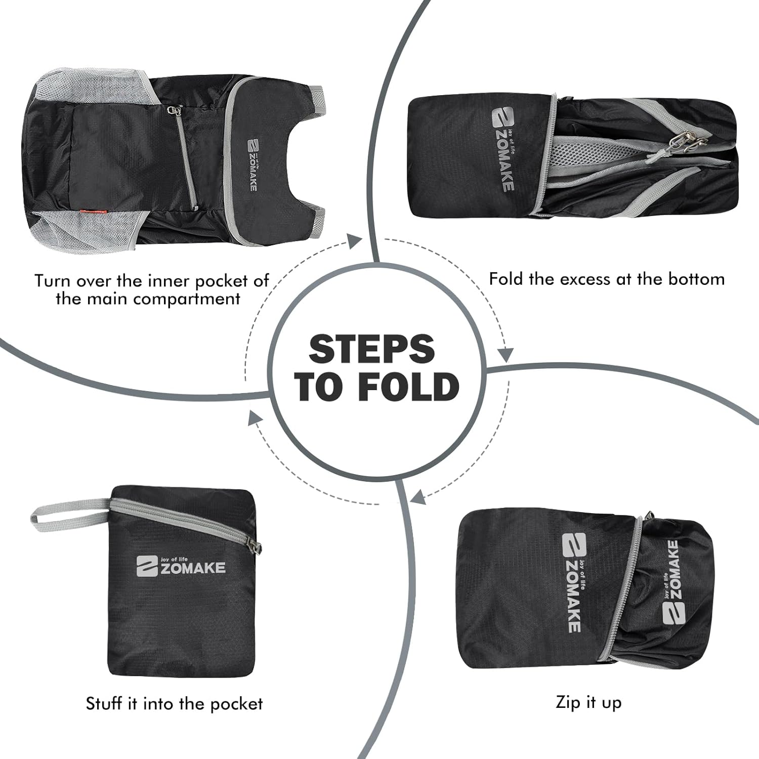 Our backpacks can all be folded into a small bag the size of a women’s handbag.Simple operation, very convenient!