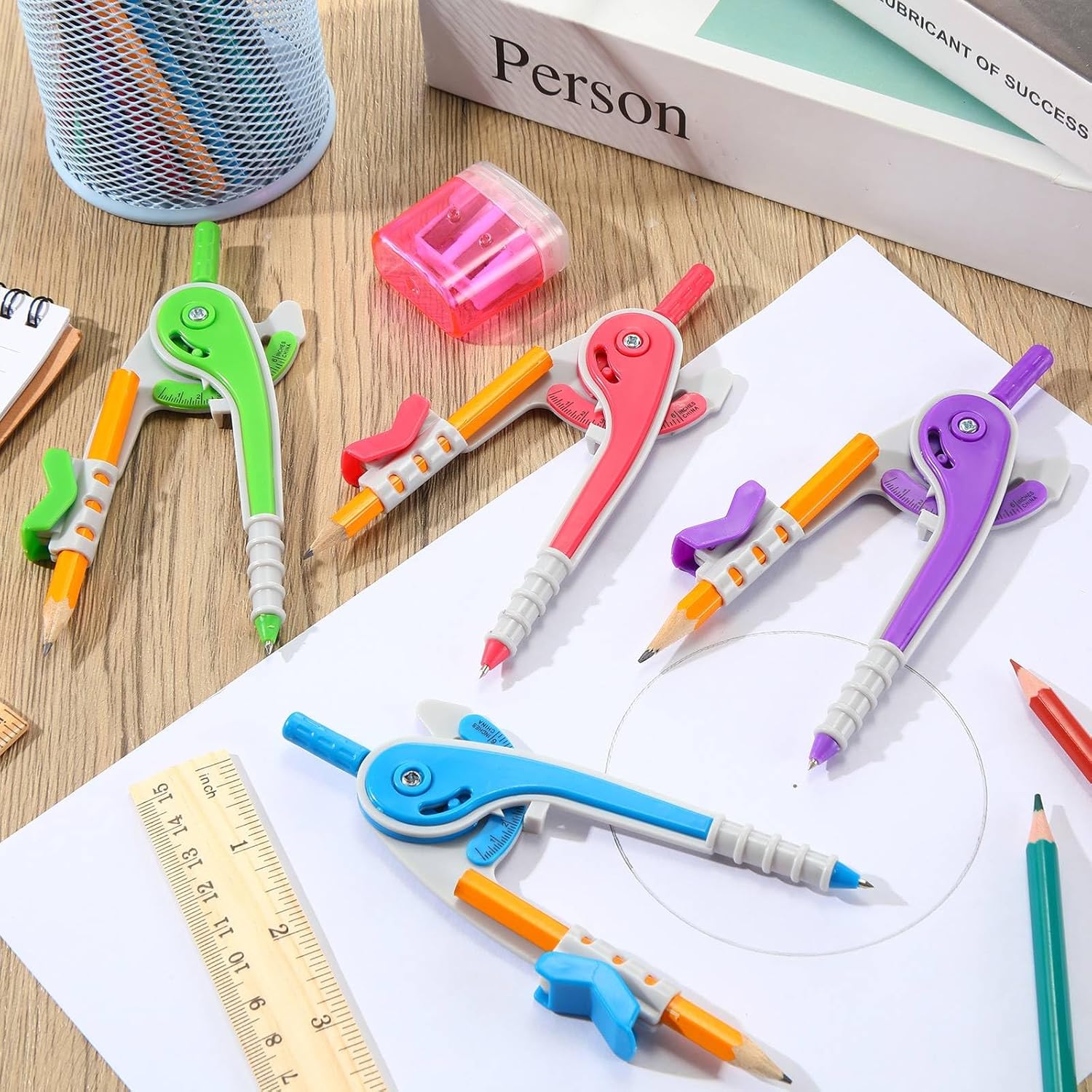 15 Compasses Included: you will receive 15 pieces of geometry compasses including 4 different colors, namely pink, purple, green and blue, each compass is equipped with a detachable pencil for drawing; Sufficient quantity and bright colors make them ideal for school districts and teachers who need multiple compasses for their students
